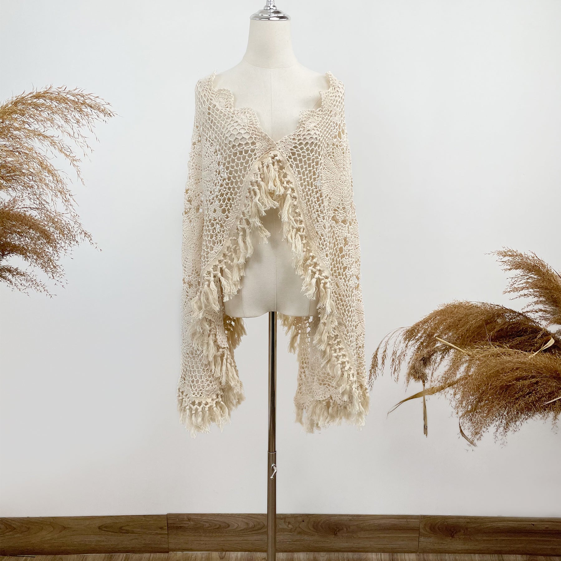 Product name: Handcraft Crochet Shawl with Tassel Handmade Cotton Beige Cape Matched Maternity Dresses for Maternity Photography Props Baby Shower Gift