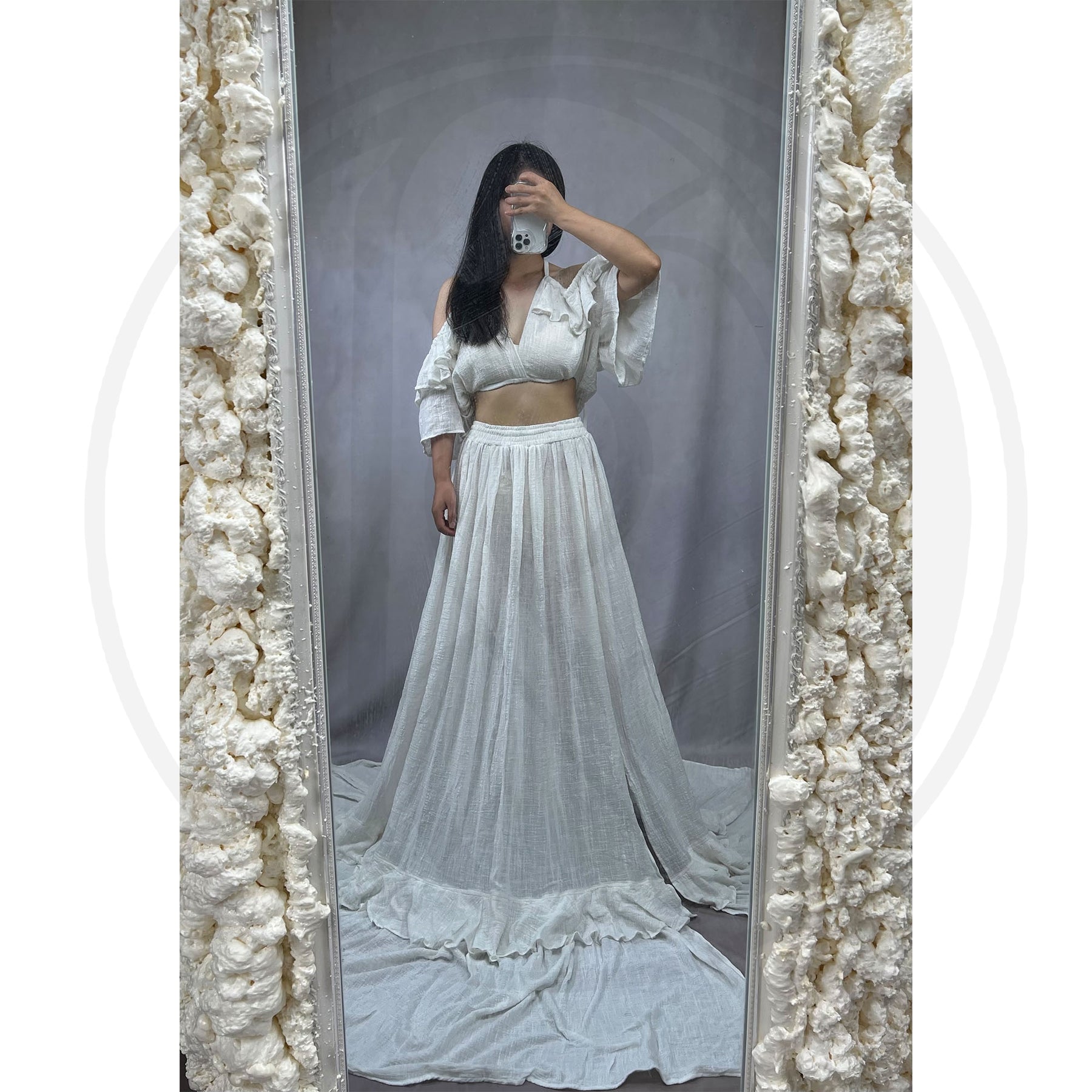 WASH CARE: Hand wash cold/ Dry clean/ Machine Washable in laundry bag/ Color separated washing/ Do not bleach/ Iron or steam the folds before photography