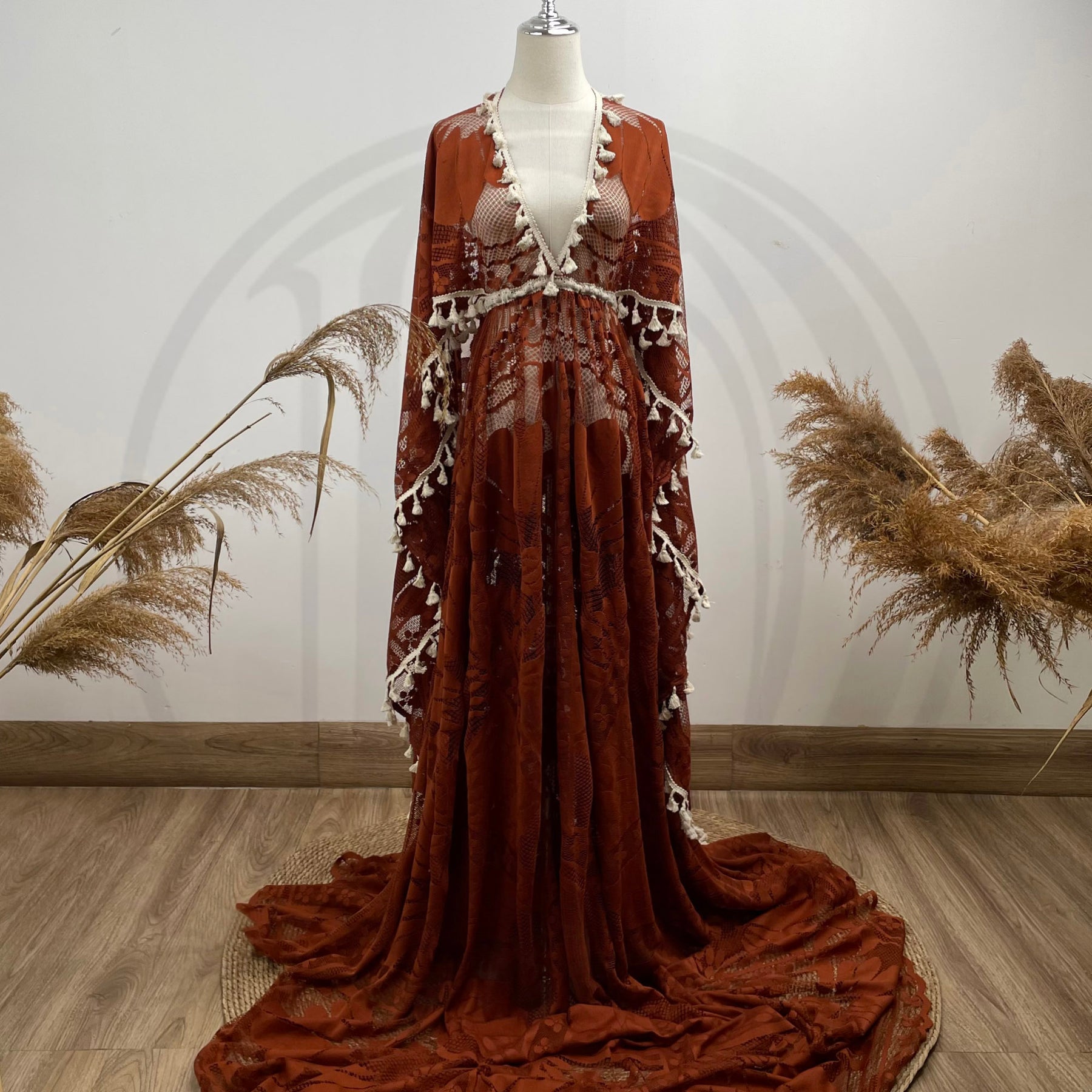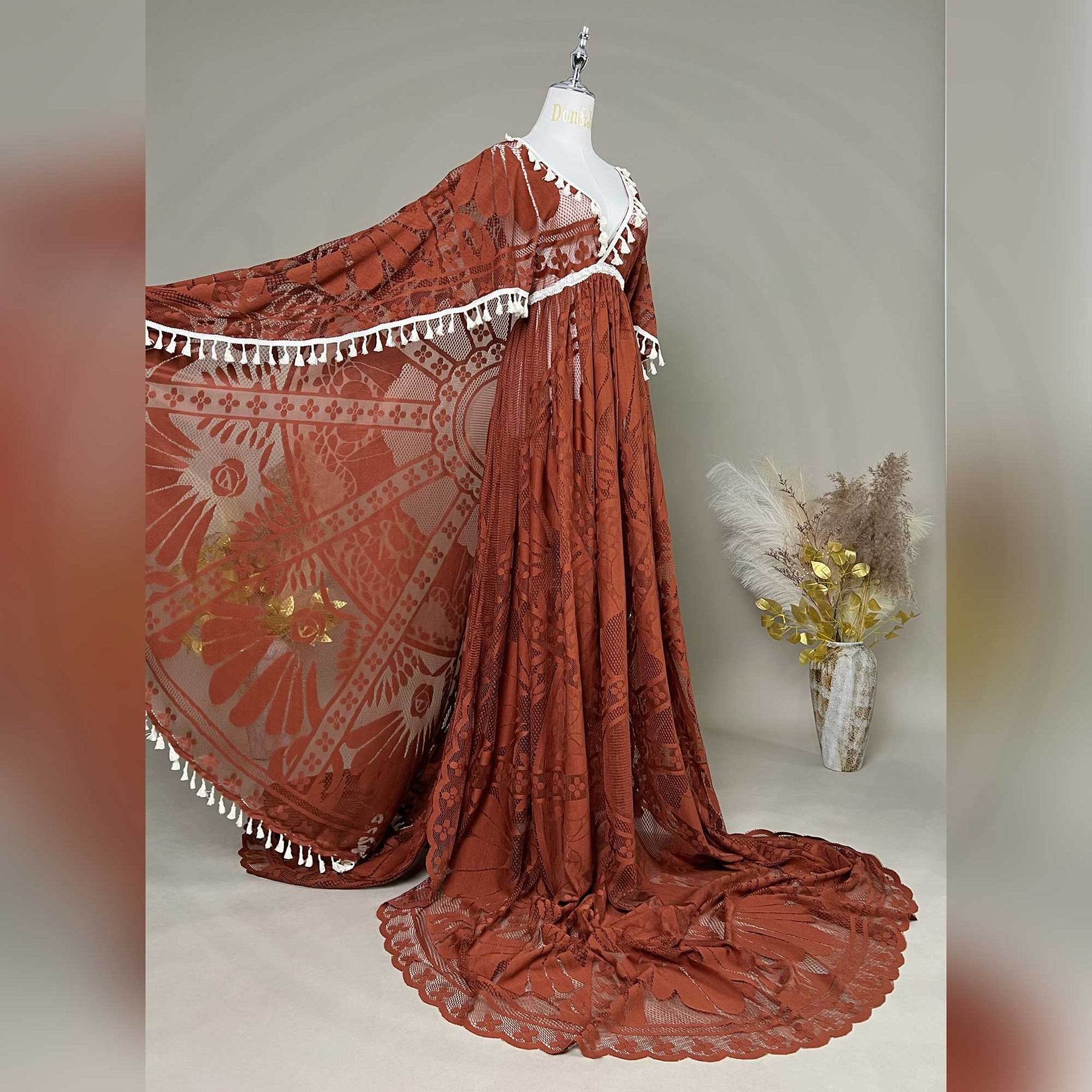 Product name: Photo Shoot Free Size Boho Lace Maternity Gown with Round Cape Evening Party Dresses Pregnant Costume with Fringe for Photography Props