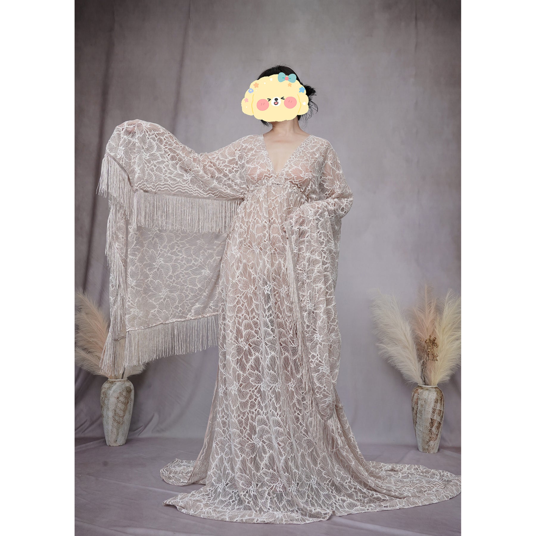 Product name: Photo Shoot Free Size Boho Lace Long Sleeves Maternity Gown Evening Party Dresses Pregnant Costume for Women Photography Props Baby Shower Robe