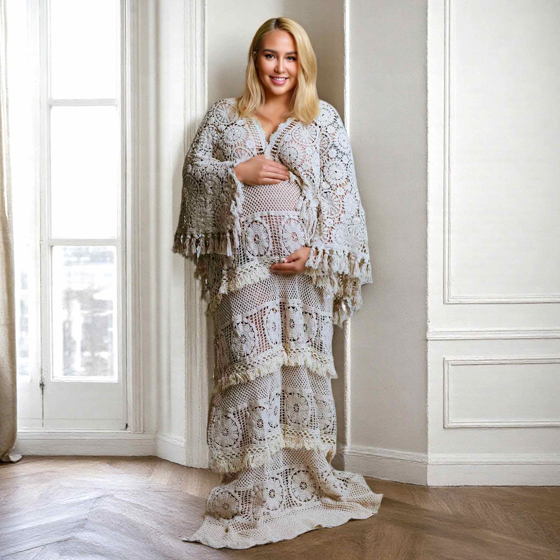 Product name: Boho Cotton V-neck Embroidered Maternity and Non-maternity Gown Photography Dress Evening Party Baby Shower for Photo Shoot