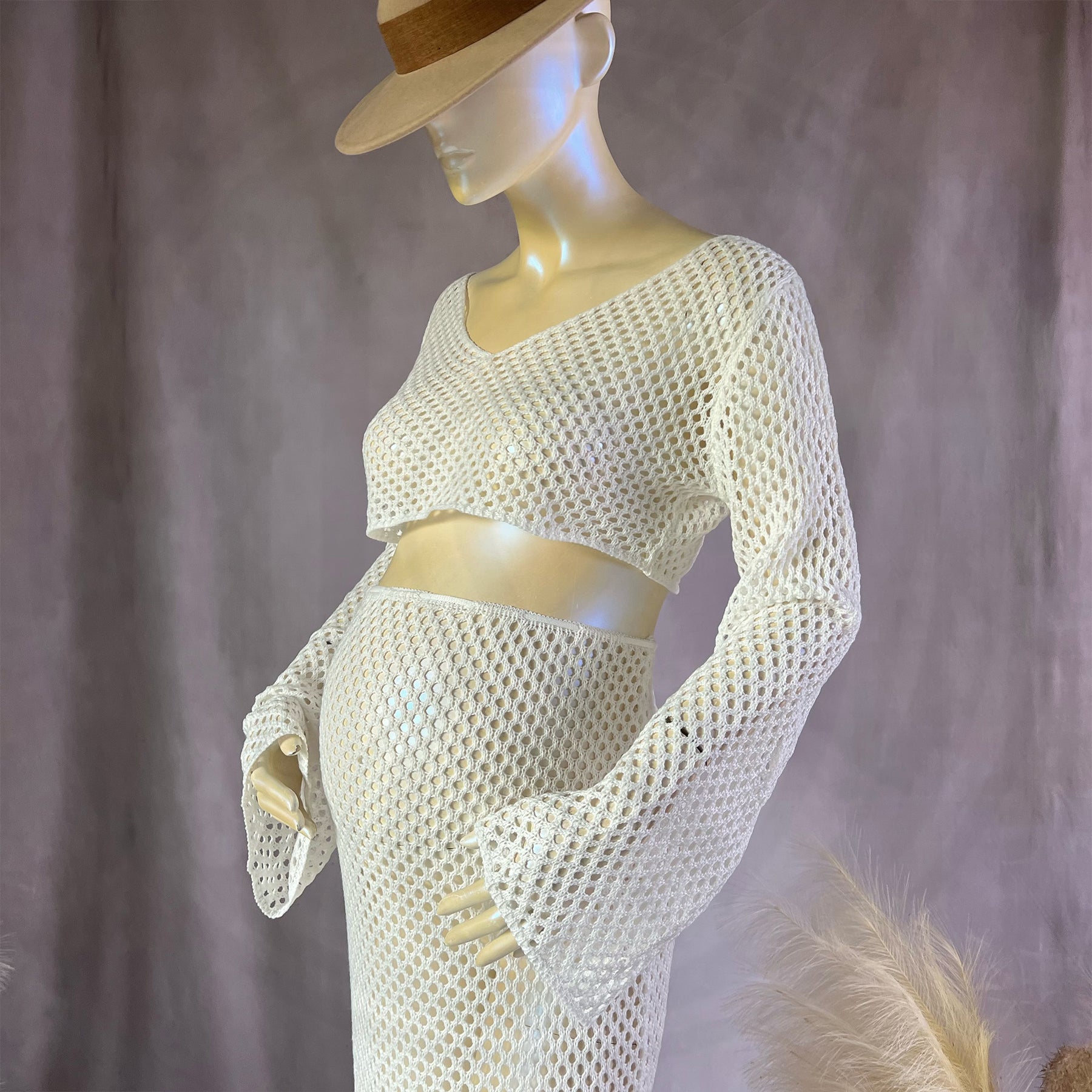 Product name: Boho White 2 Pieces Long-sleeved Top and Skirt Set Maternity and Non-maternity Gown Photography Dress Baby Shower for Photo Shoot