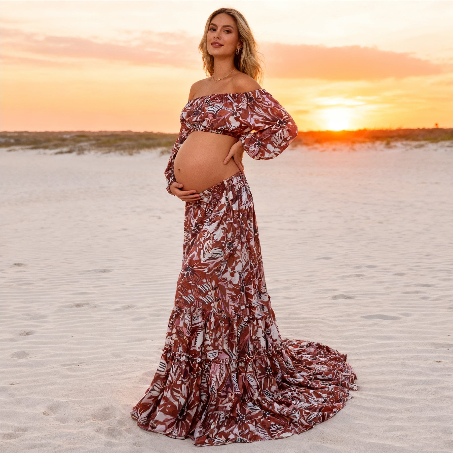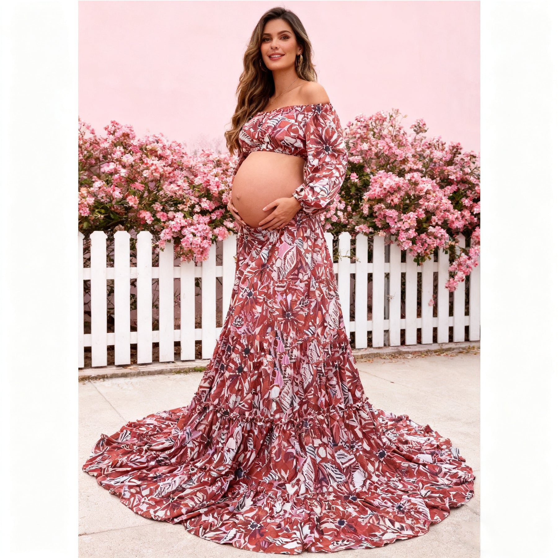 Product name: Floral top and Skirt Set Multi-wear Maternity or Non-maternity Dresses for Photography Props Baby Shower Photo Props