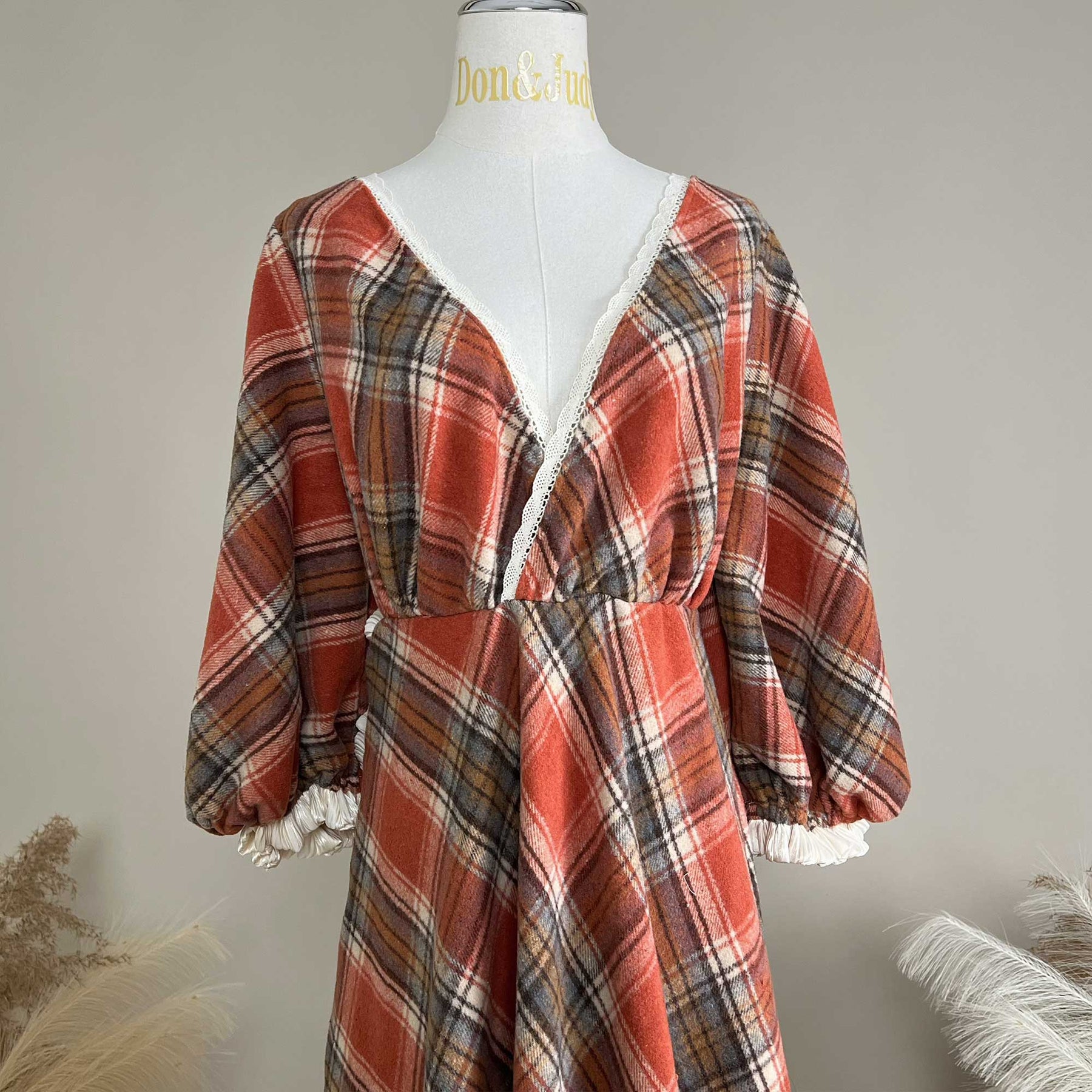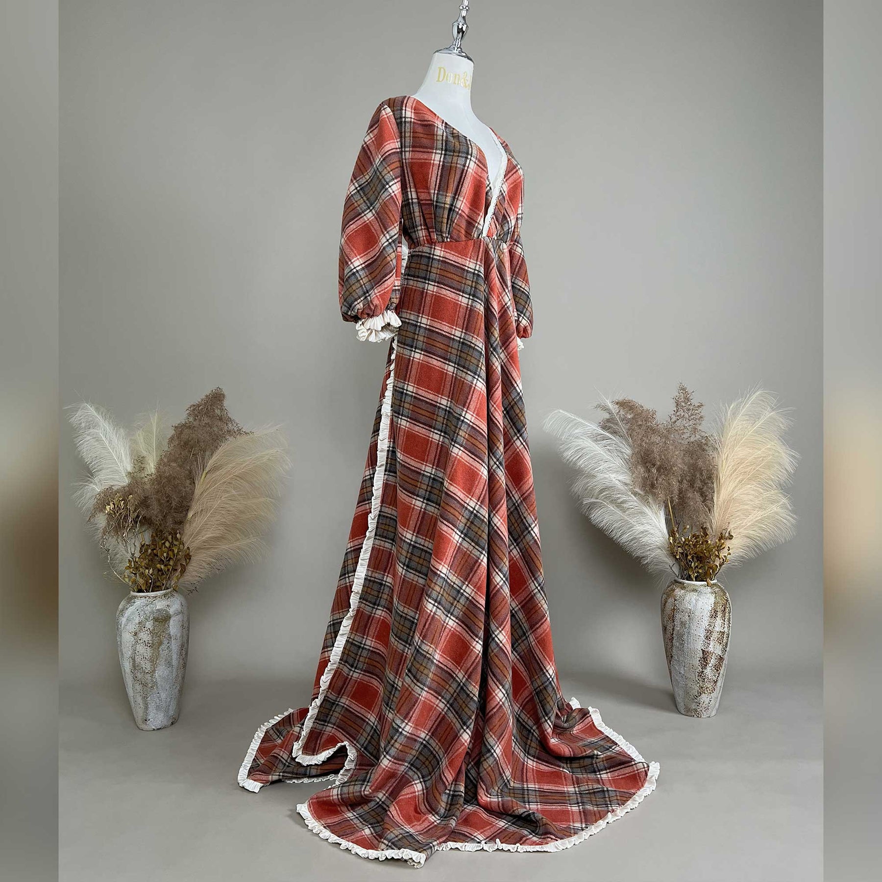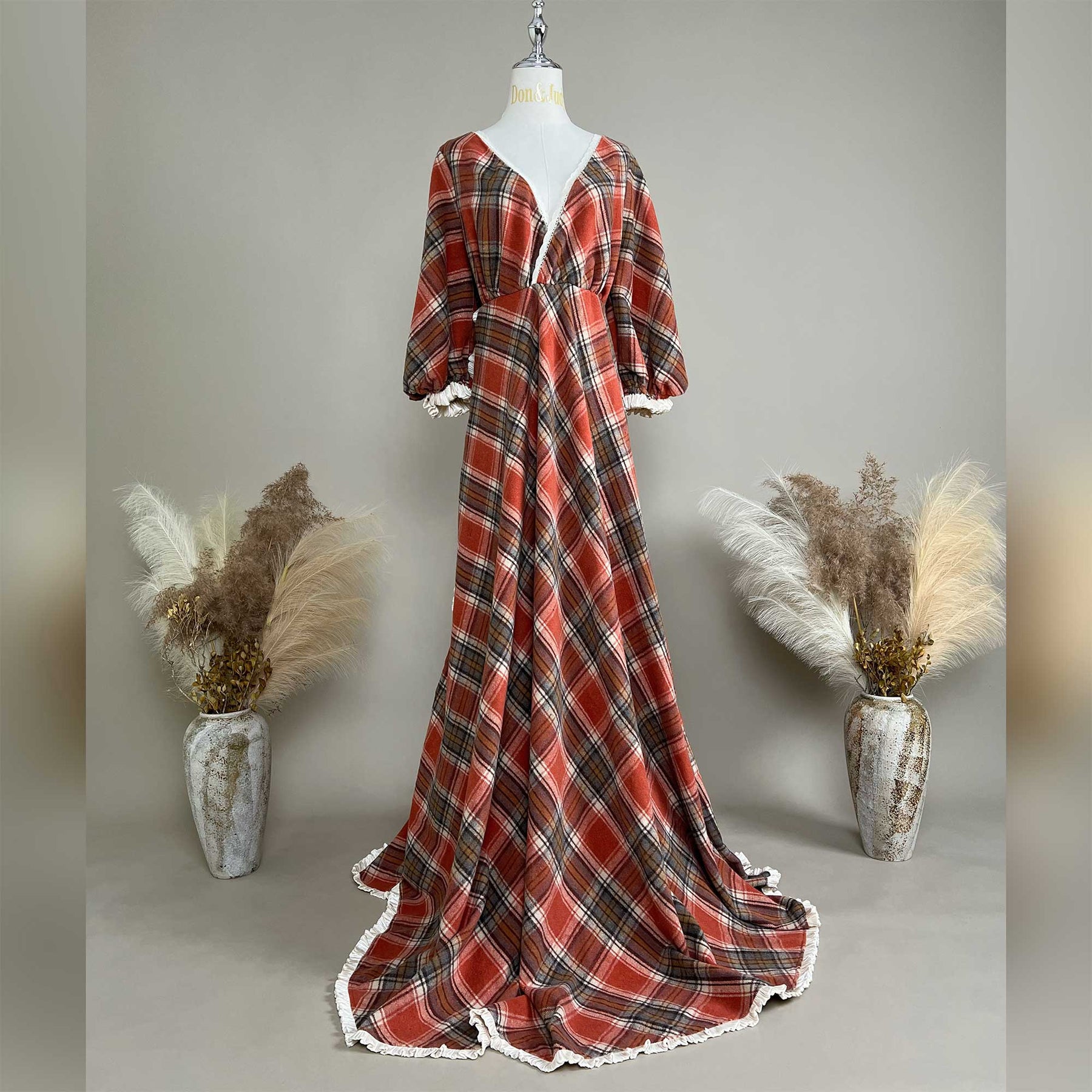 Product name: Cotton V-Neck Plaid Dress – Maternity or Non-maternity Dresses for Photography Props Baby Shower Photo Props