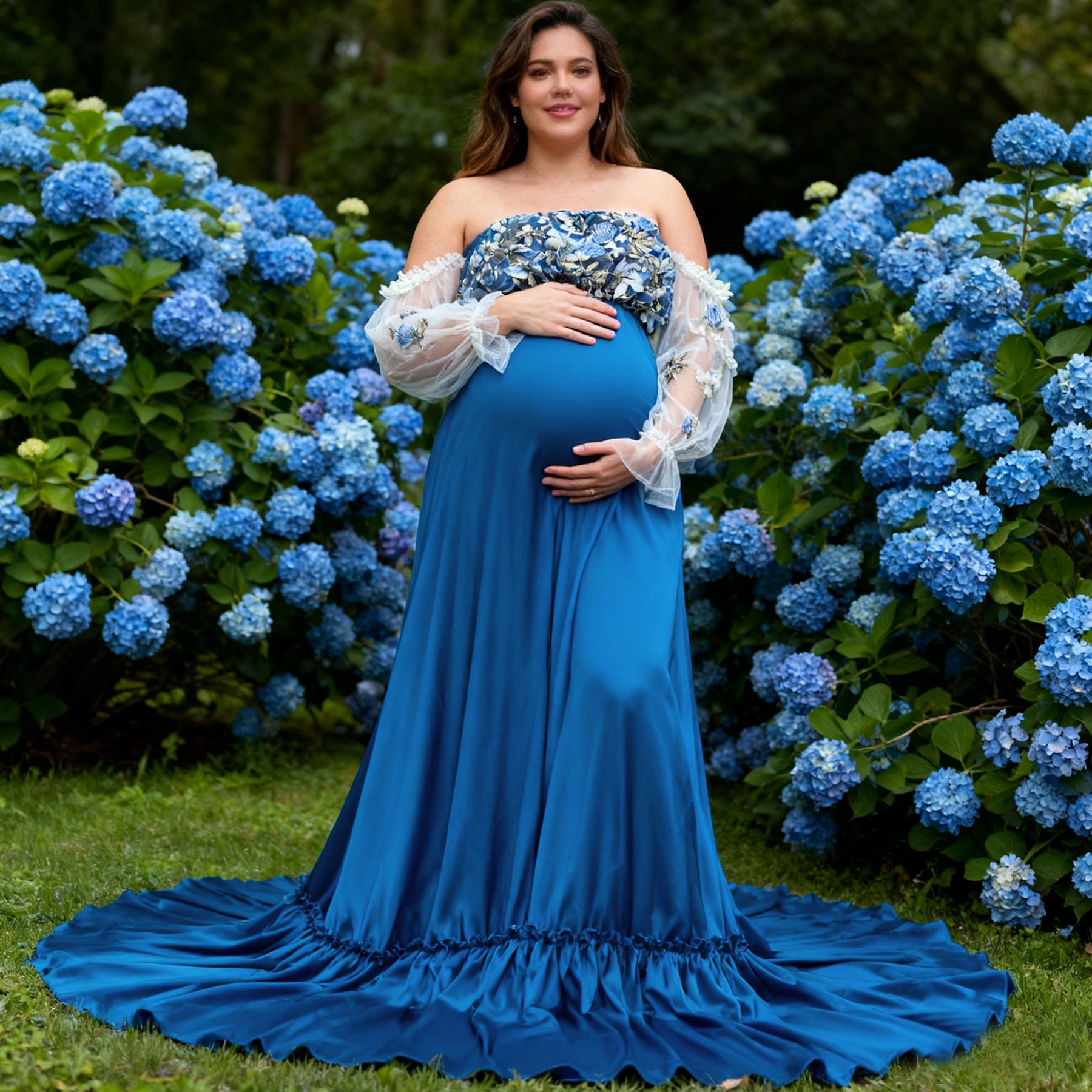 Product name: Chic Navy Strapless Long Sleeve Maxi Gown – Maternity or Non-maternity Dresses for Photoshoot and Baby Shower Outfit