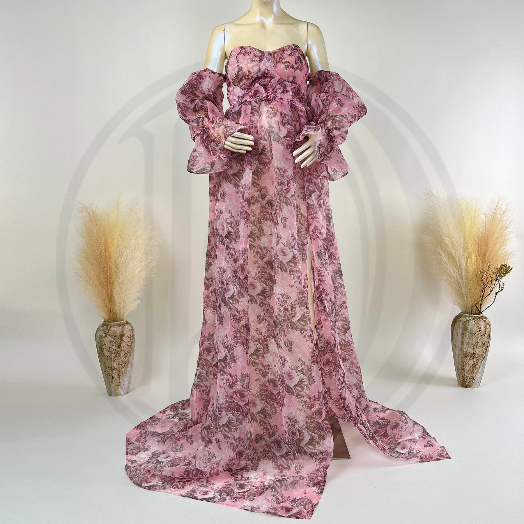 Product name: Organza Puff Sleeve Side Slit Dress Maternity Gown Evening Party Dresses Pregnant for Women Photography Props Baby Shower Gift