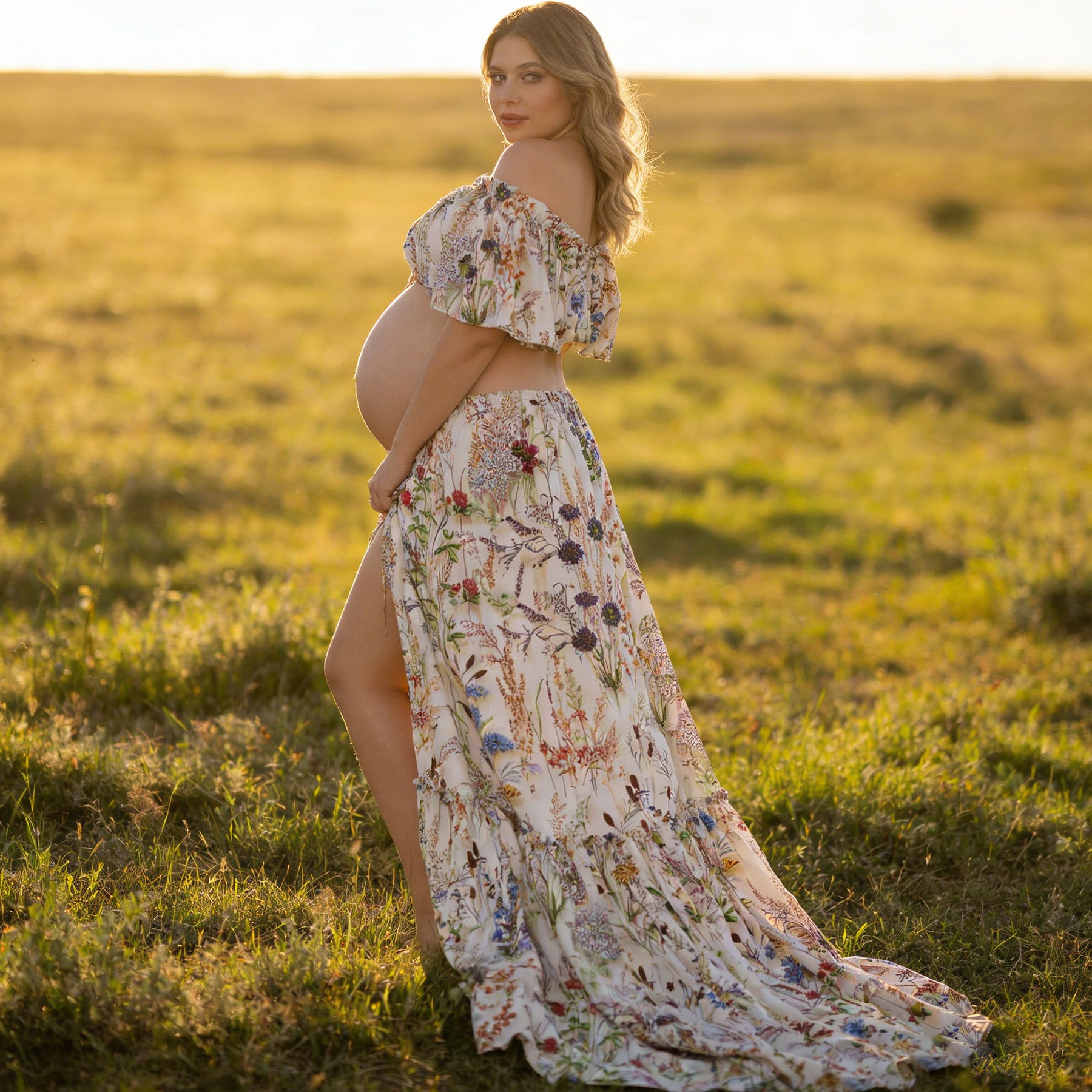 Product name: Floral Maternity or Non-maternity Gown Party Dresses for Photography Props Baby Shower Photo Props