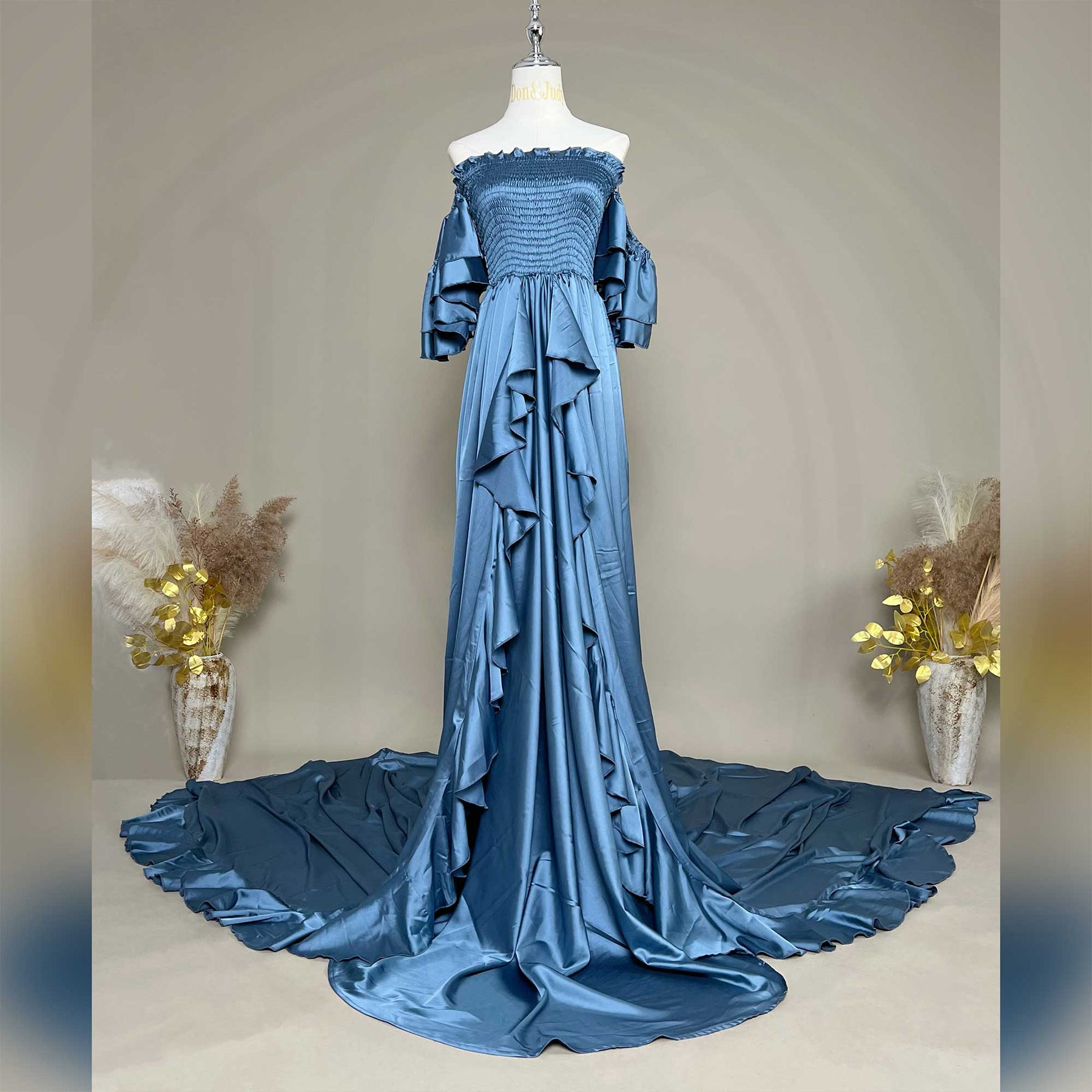 Product name: Silk-like Smooth Off-Shoulder Long Train Maternity or Non-maternity Gown Pregnant Woman Pregnancy Photo Shoot Prop Dress
