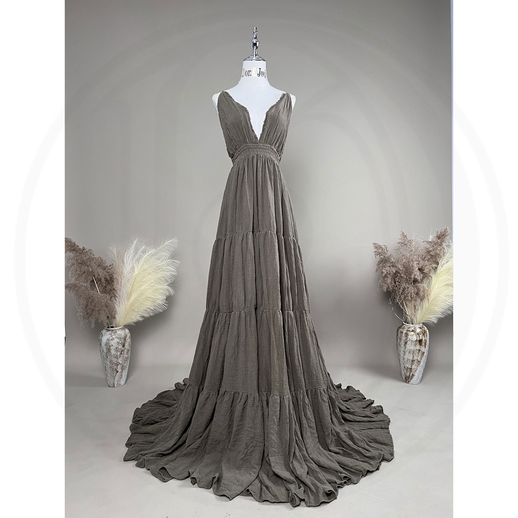 Product name: Photography Free Size Deep V Cotton Maternity Gown Evening Party Dresses Baby Shower Robe Maternity Couture for Photo Shoot