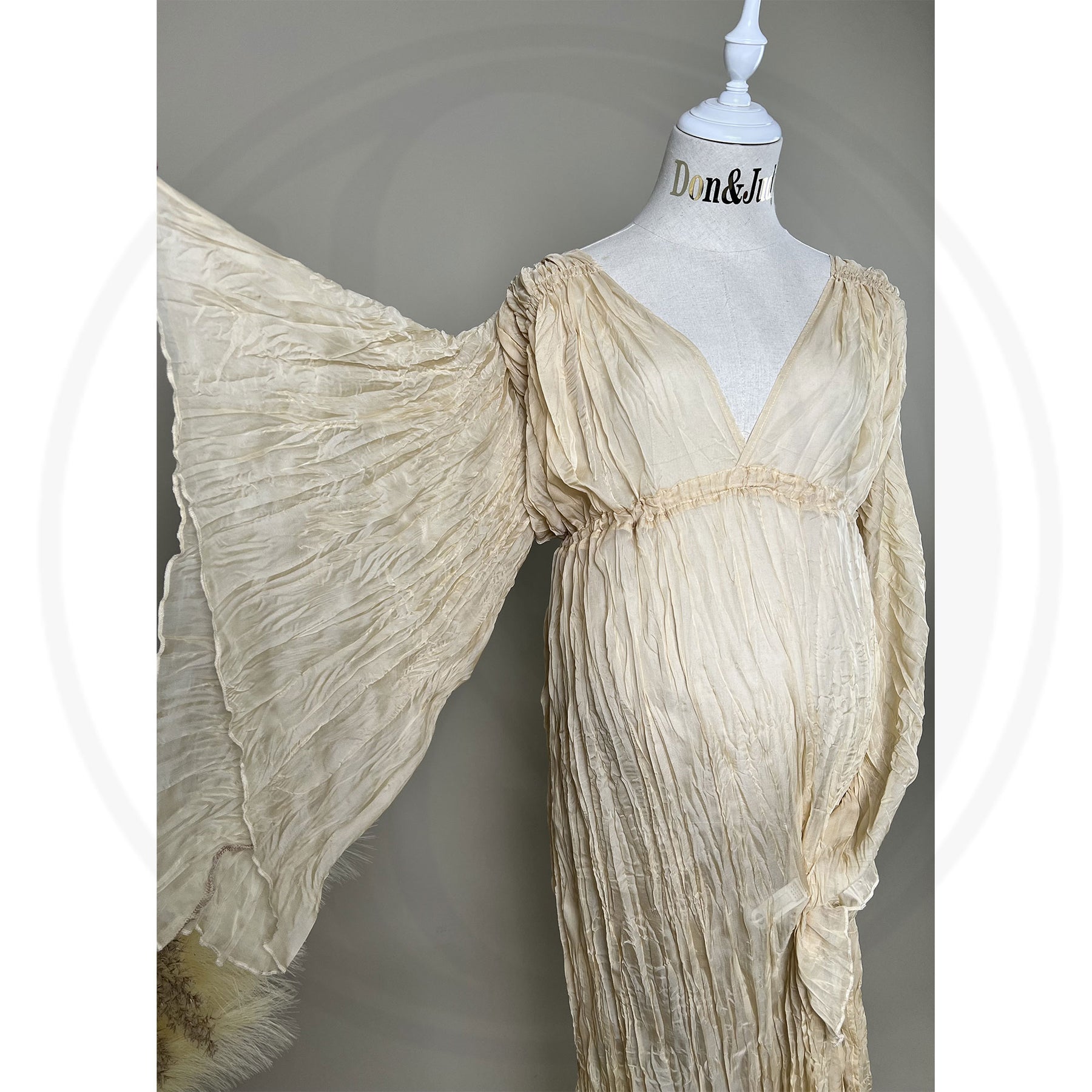 Product name: Crushed chiffon Flared Sleeve Dress with Side Slits Maternity Or Non-Maternity Photoshoot Props Pregnancy Dresses Baby Shower Gifts