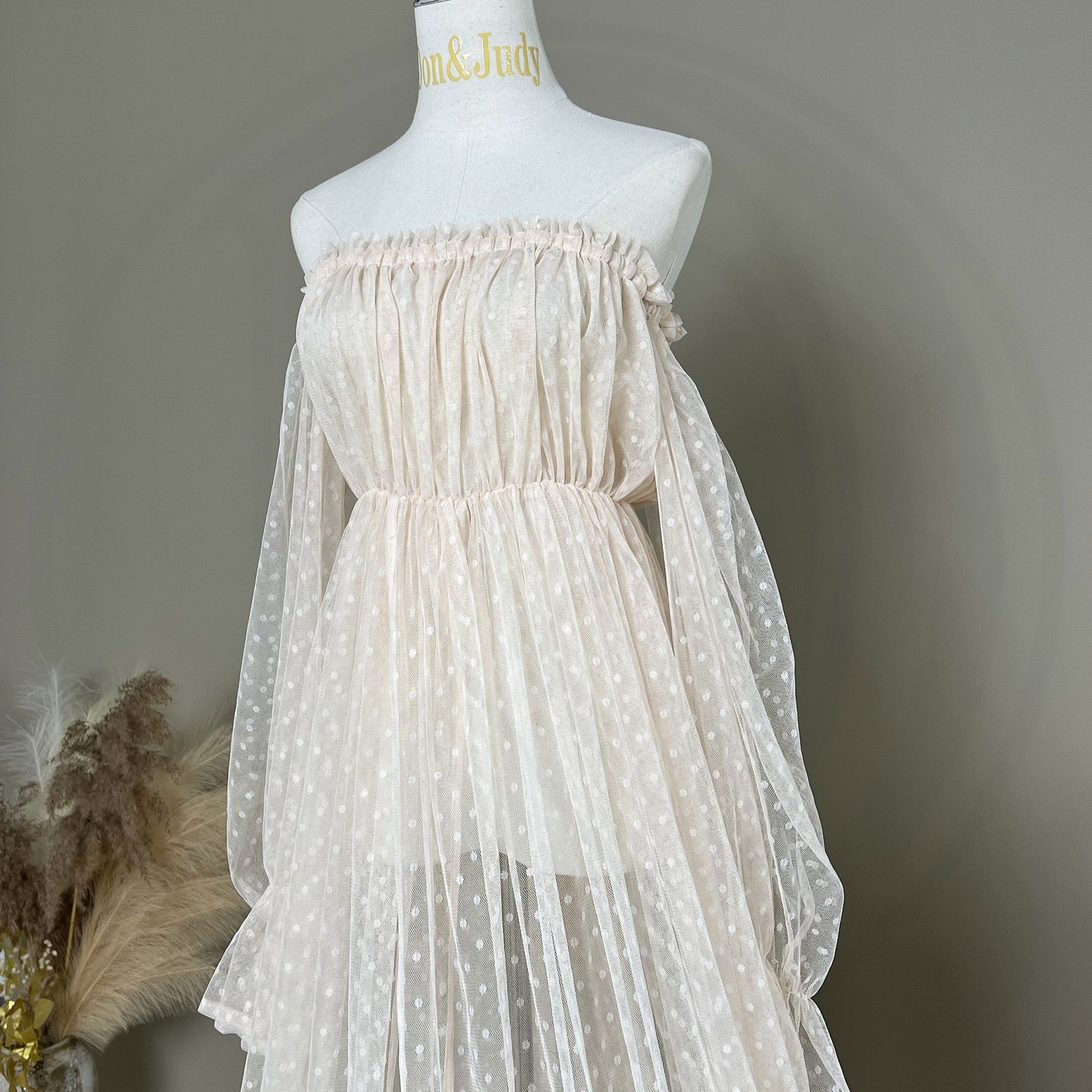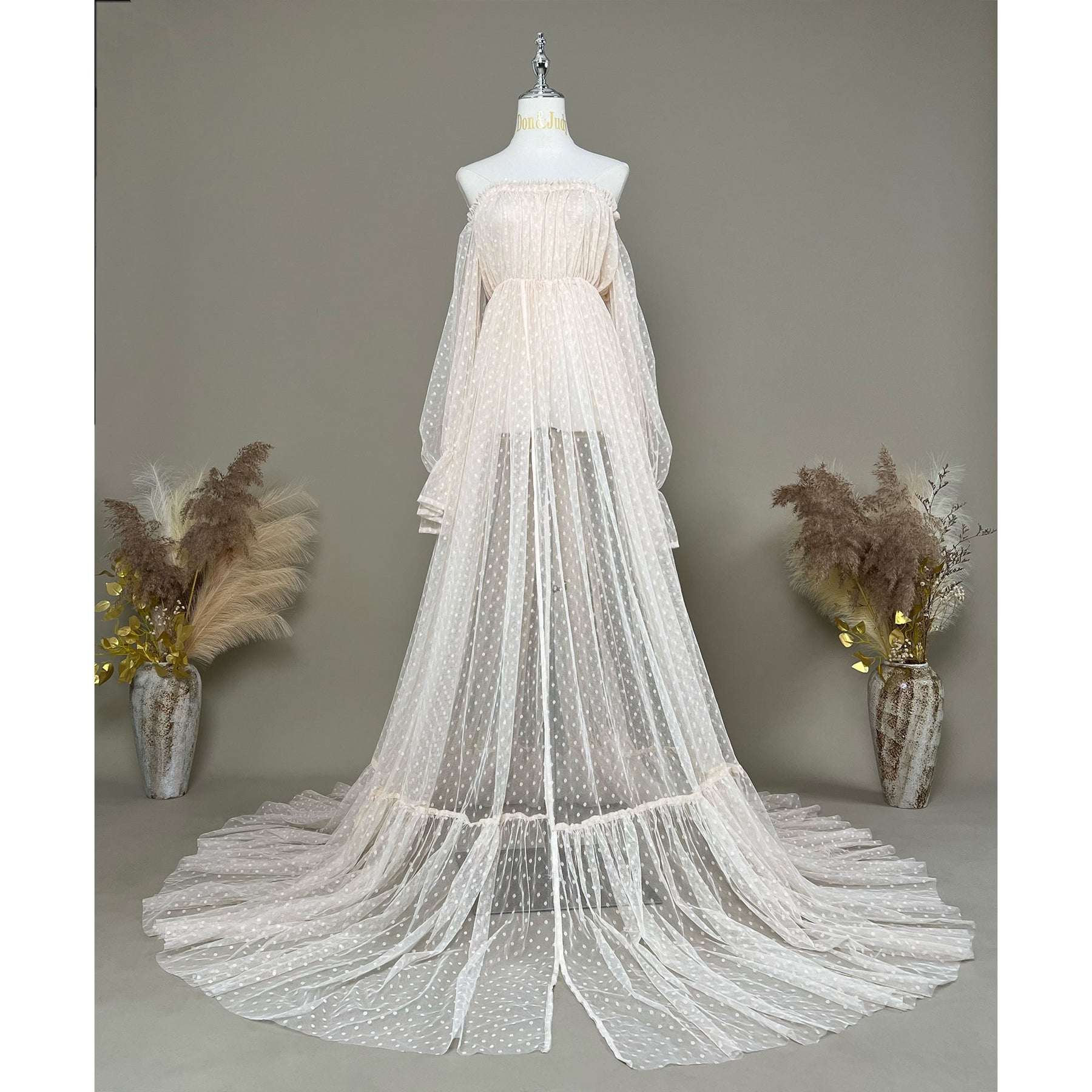 Product name:  Tulle One-shoulder Long-sleeved Front Slit Maternity Gown Dresses Pregnant for Women Photography Photoshoot Props Baby Shower Gift