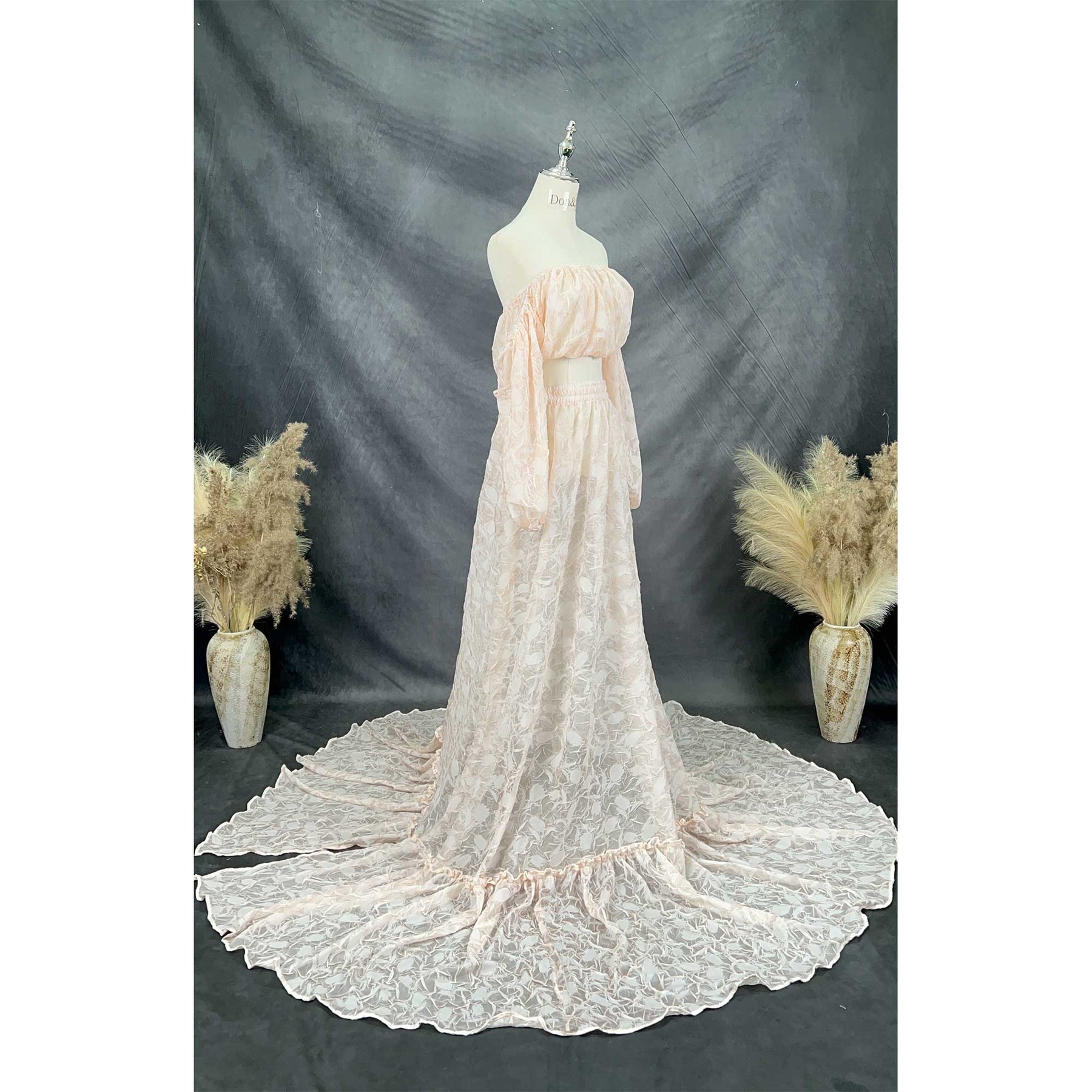 Product name: Boho Chiffon Embossed 2 Pieces Set Maternity Or Non-Maternity Gown Photoshoot Props Pregnancy Dresses Baby Shower Gift