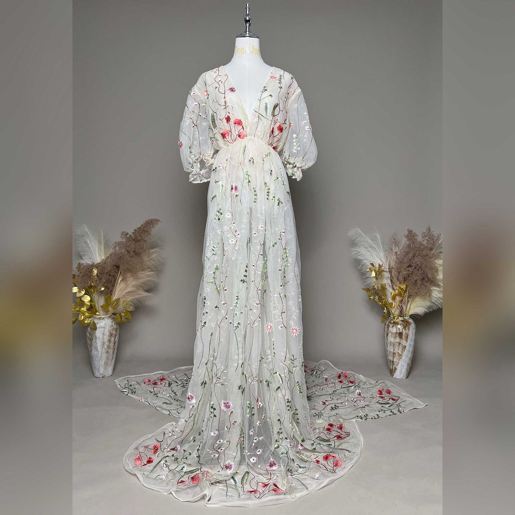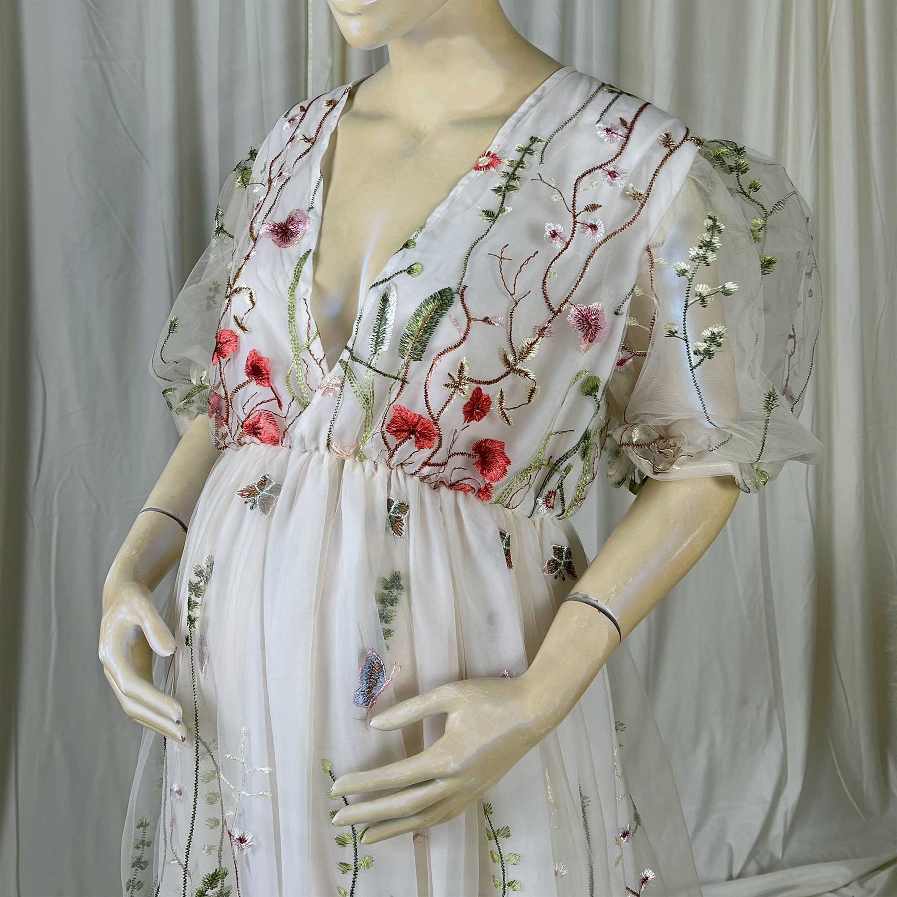 Product name: Puff Sleeves Embroidered Floral Tulle Dress Maternity or Non-maternity Gown Dresses for Photography Props