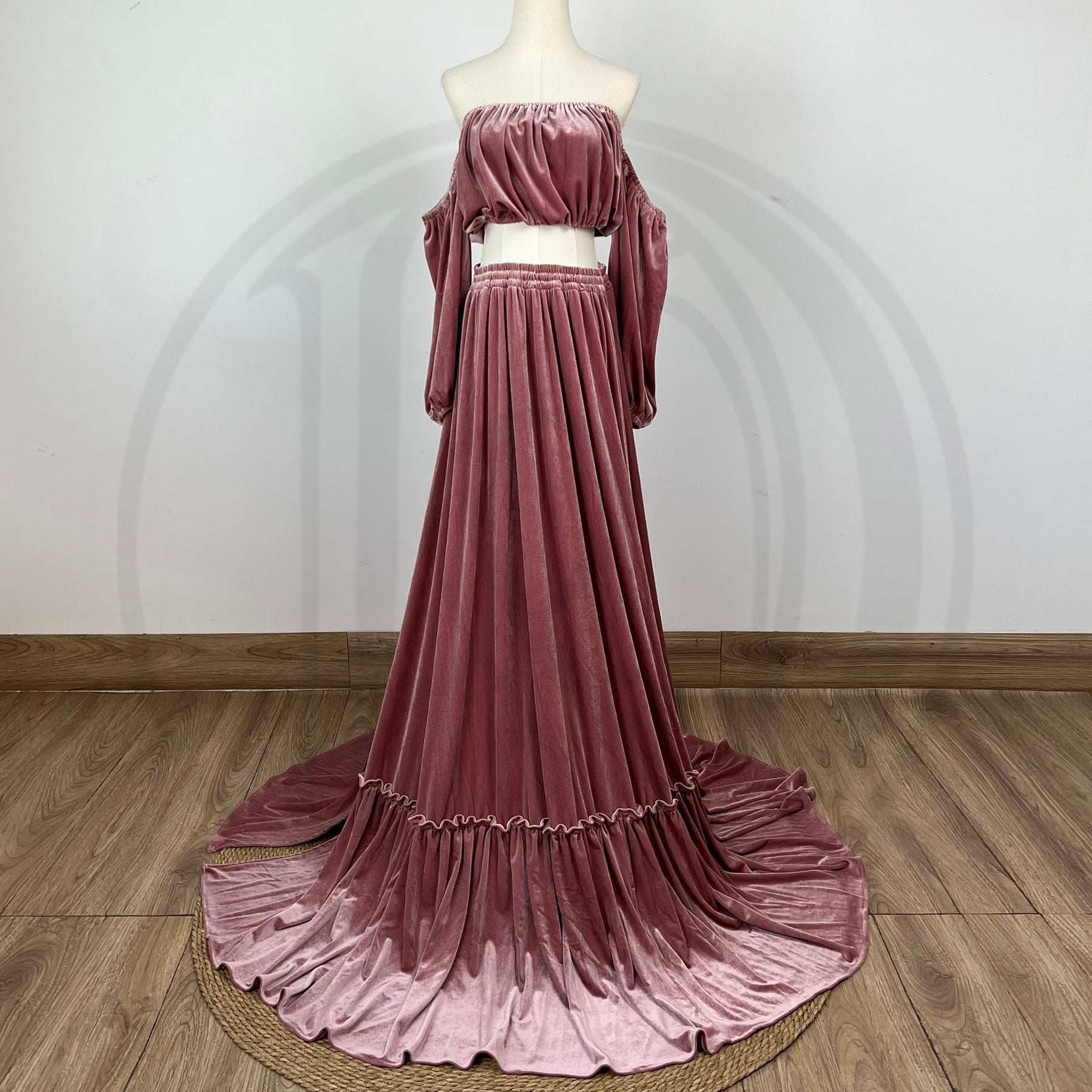 Photo Shoot Props A Suite Soft Maxi Long Maternity Dress Pregnant Velvet Gown Evening Party Robe for Woman Photography Accessories Baby Shower Gift