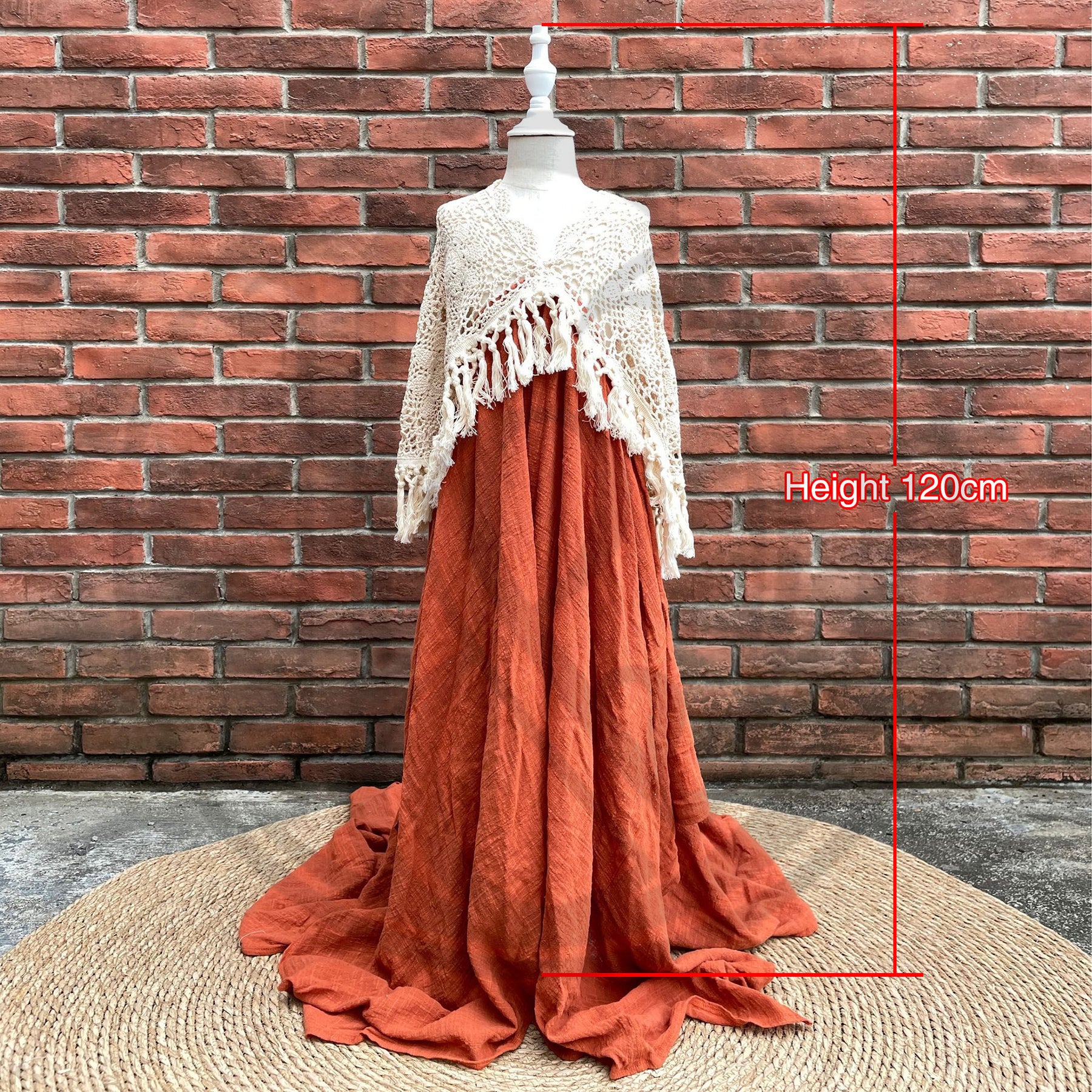 5-6 Years Old Kid Kaftan Free Size Boho Photo Shoot New Soft Hand Crochet Cotton Long Bell Sleeves Little Girl Princess Casual Gown for Childen Photography Prop Studio