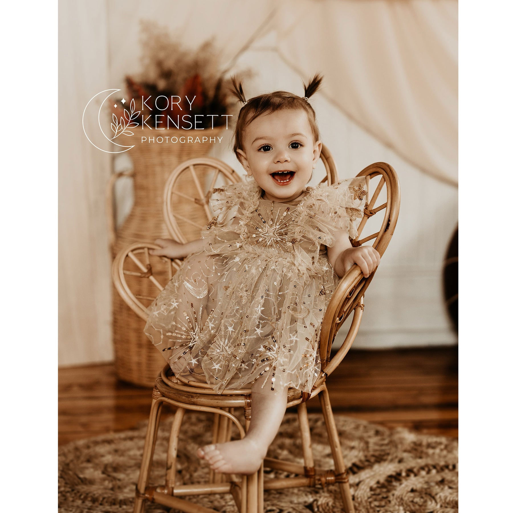 Product name: Star and Moon Tulle Kids Dress for Photo Shoot Props Photography Accessories Material: 100% polyester Size: 9-12 month. 21-24 month.