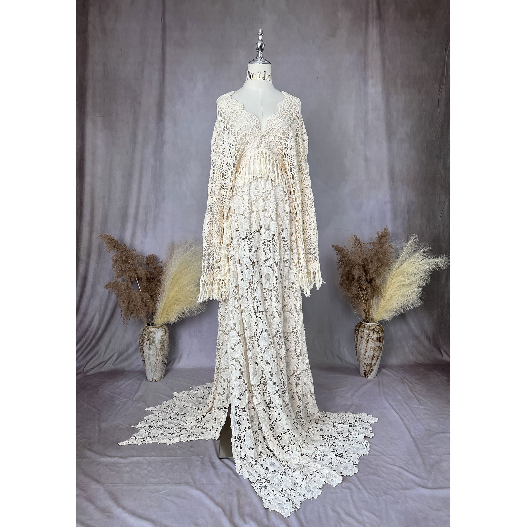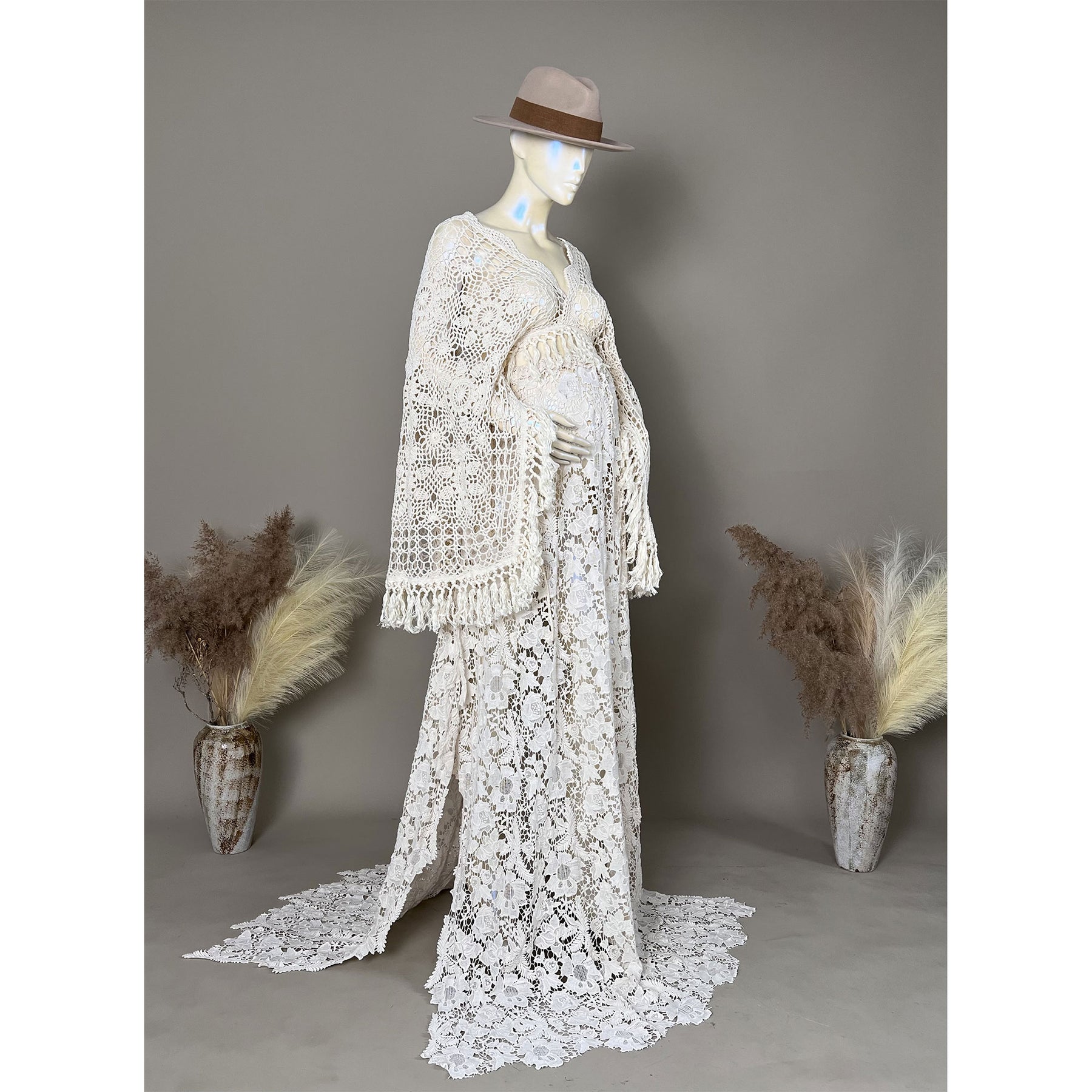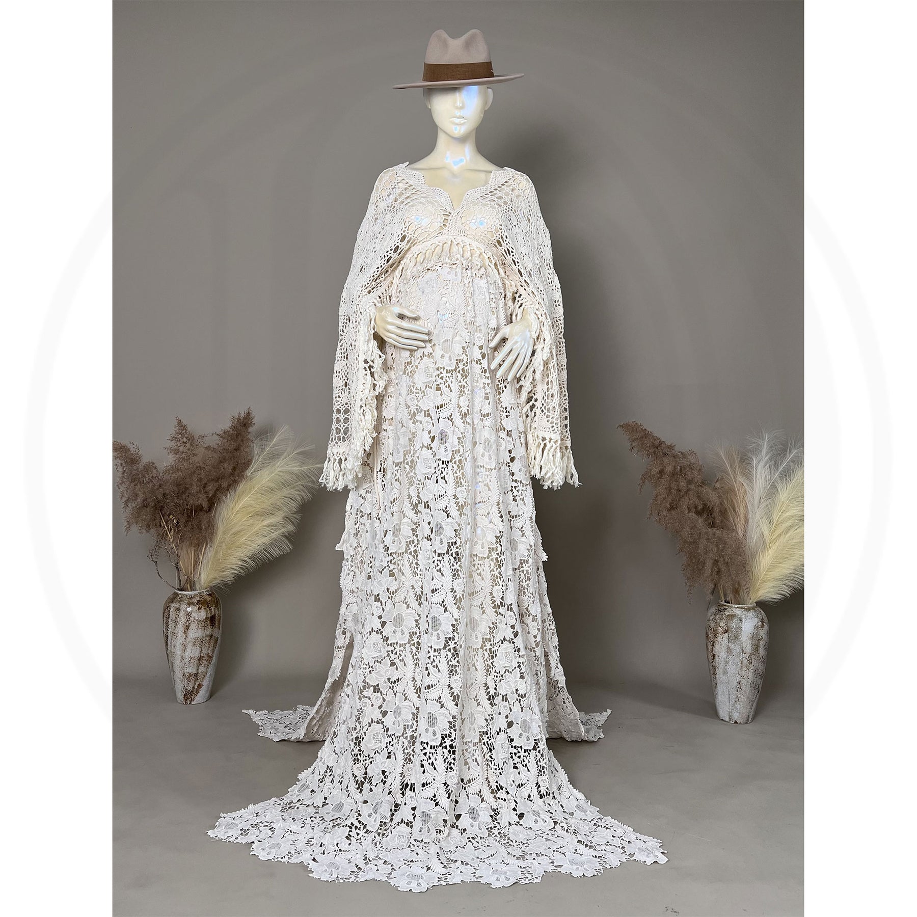 Product name: A Set Embroidery Cape Beige Cotton Photo Shoot Free Size Skirt Maternity Gown Evening Party Dresses Pregnant Costume for Photography Props