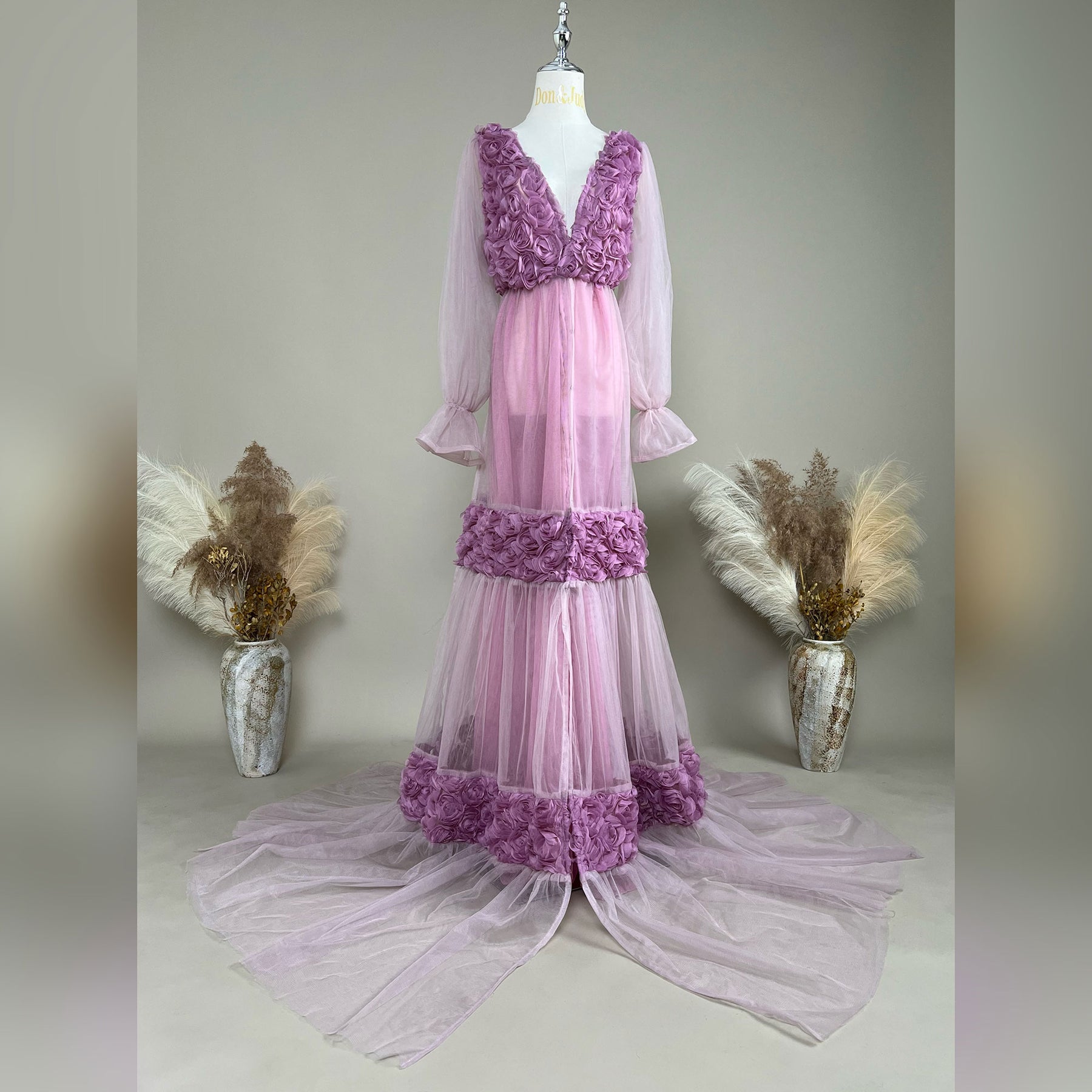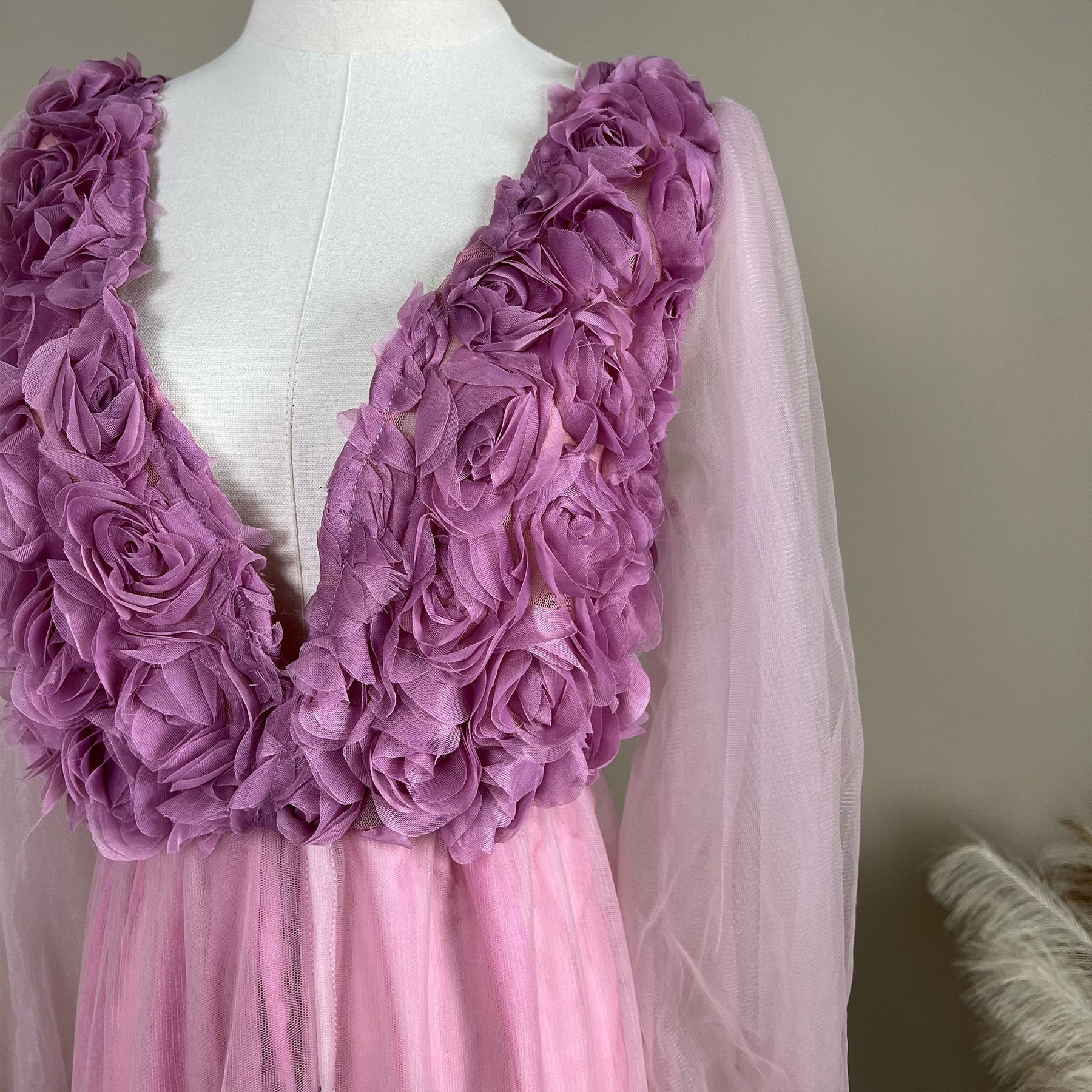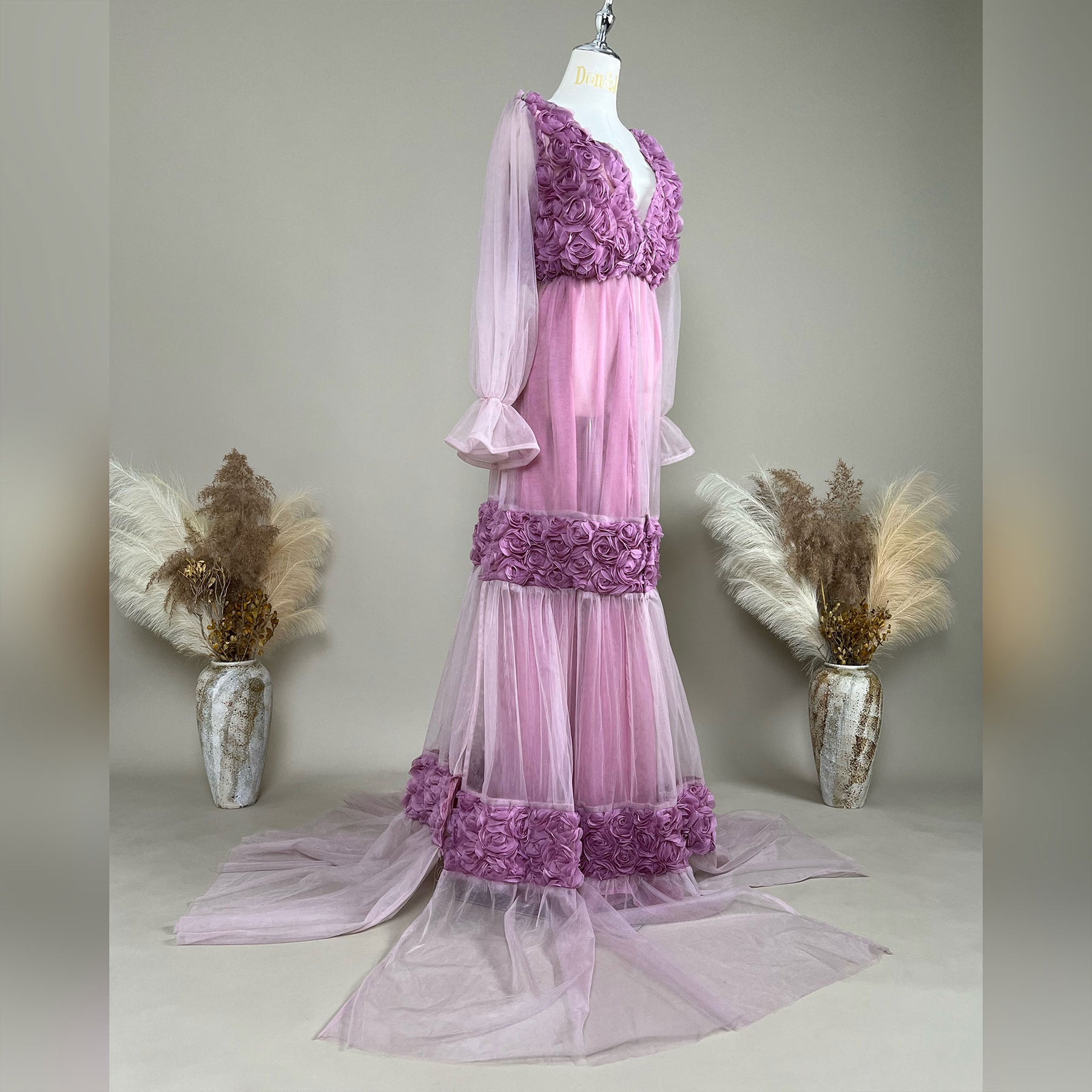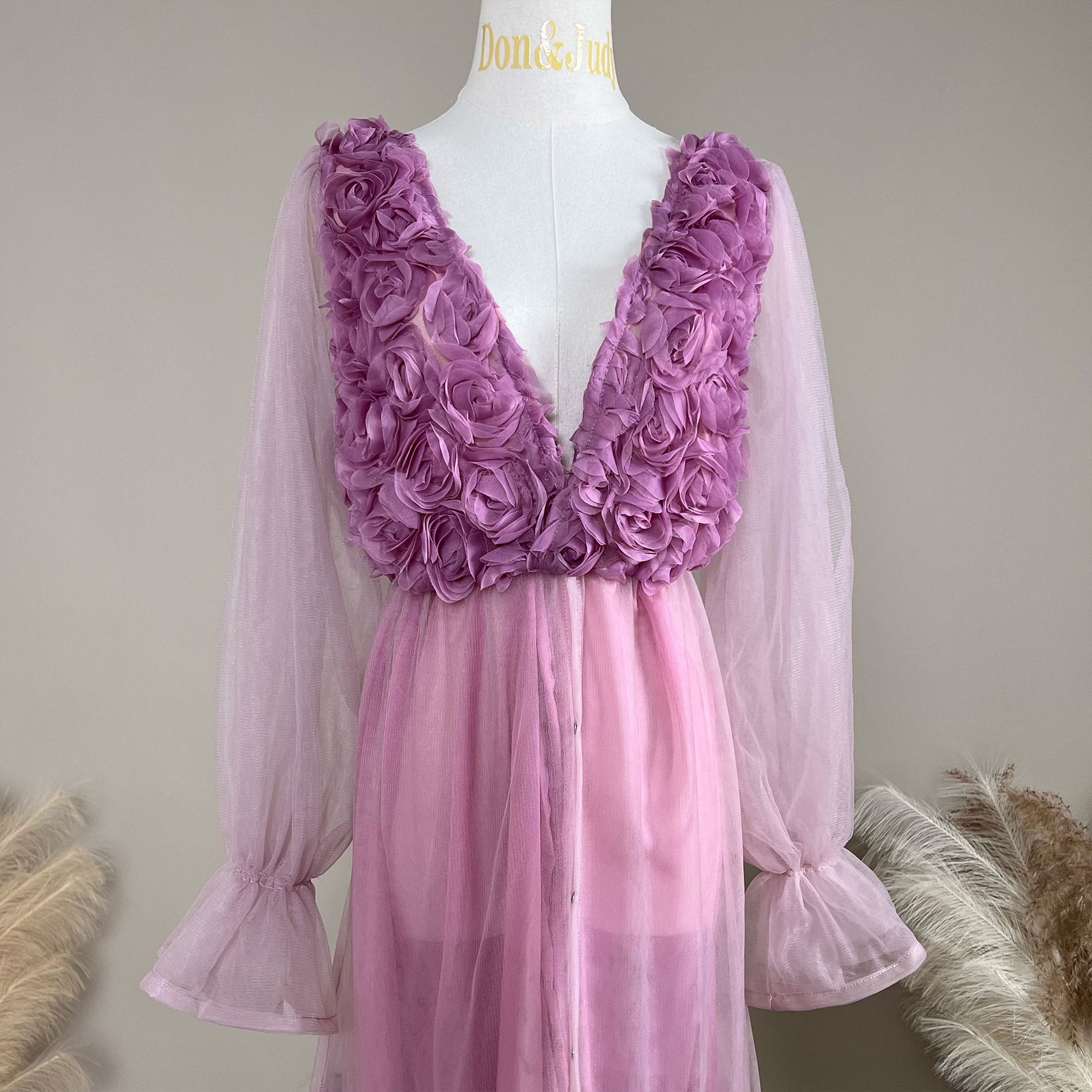 Product name:  Purple Floral Tulle Dress  – Matching Gowns for Maternity or Non-maternity Photography Props & Baby Shower Photos