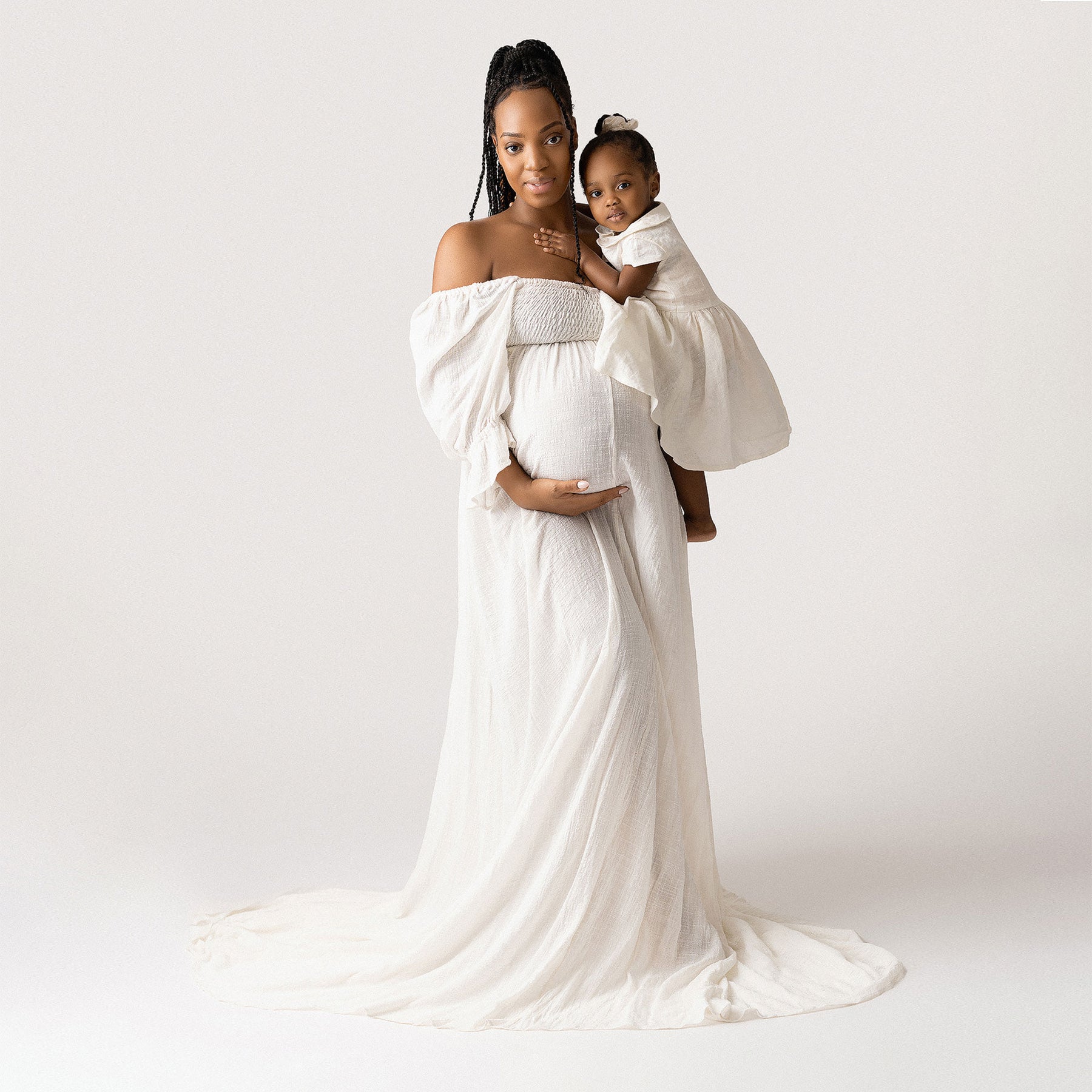 Product name: Vintage Cotton French Ruffled Lantern Sleeves Multi-wear Dress Maternity Gown Photography Dress Evening Party Baby Shower for Photo Shoot