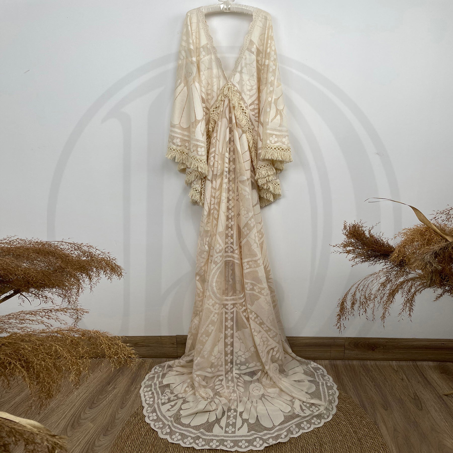 Product name: Beige Boho Lace Mommy Gown with Matched Little Gilrs 3-6years Old Dress Set Pregnancy Photography Dresses Bohemia Maxi Gown Photo Shoot Prop
