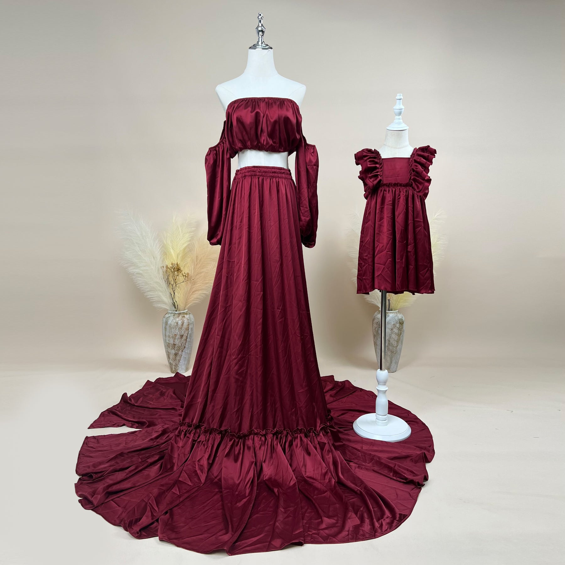 Product name: Mommy Gown with Matched Little Gilrs 9-24 Month and 3-6years Old Dress 2 Pieces Gown Maternity or Non-maternity Gown Photoshoot Evening Party Dresses Pregnant for Women Photography Props Baby Shower Gift