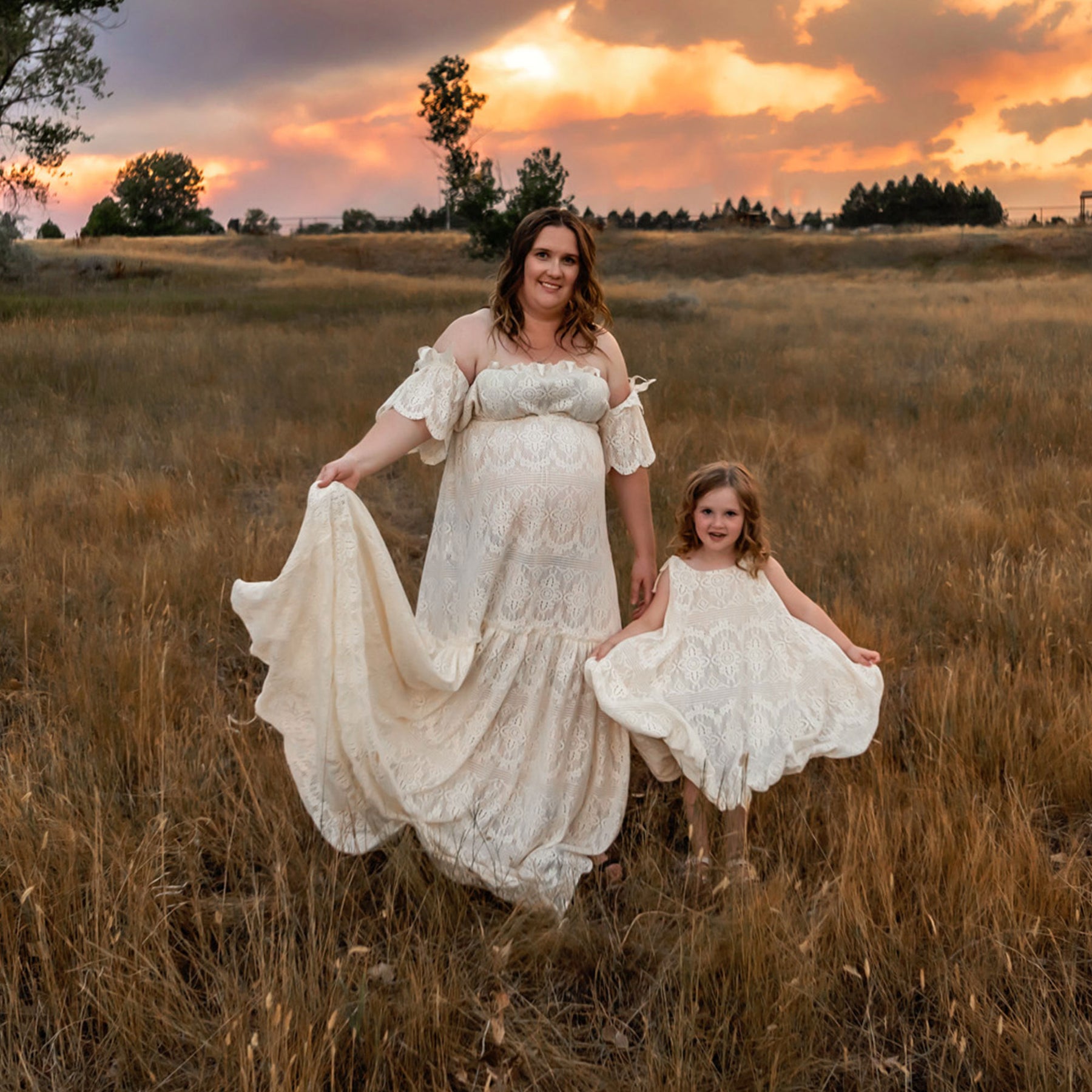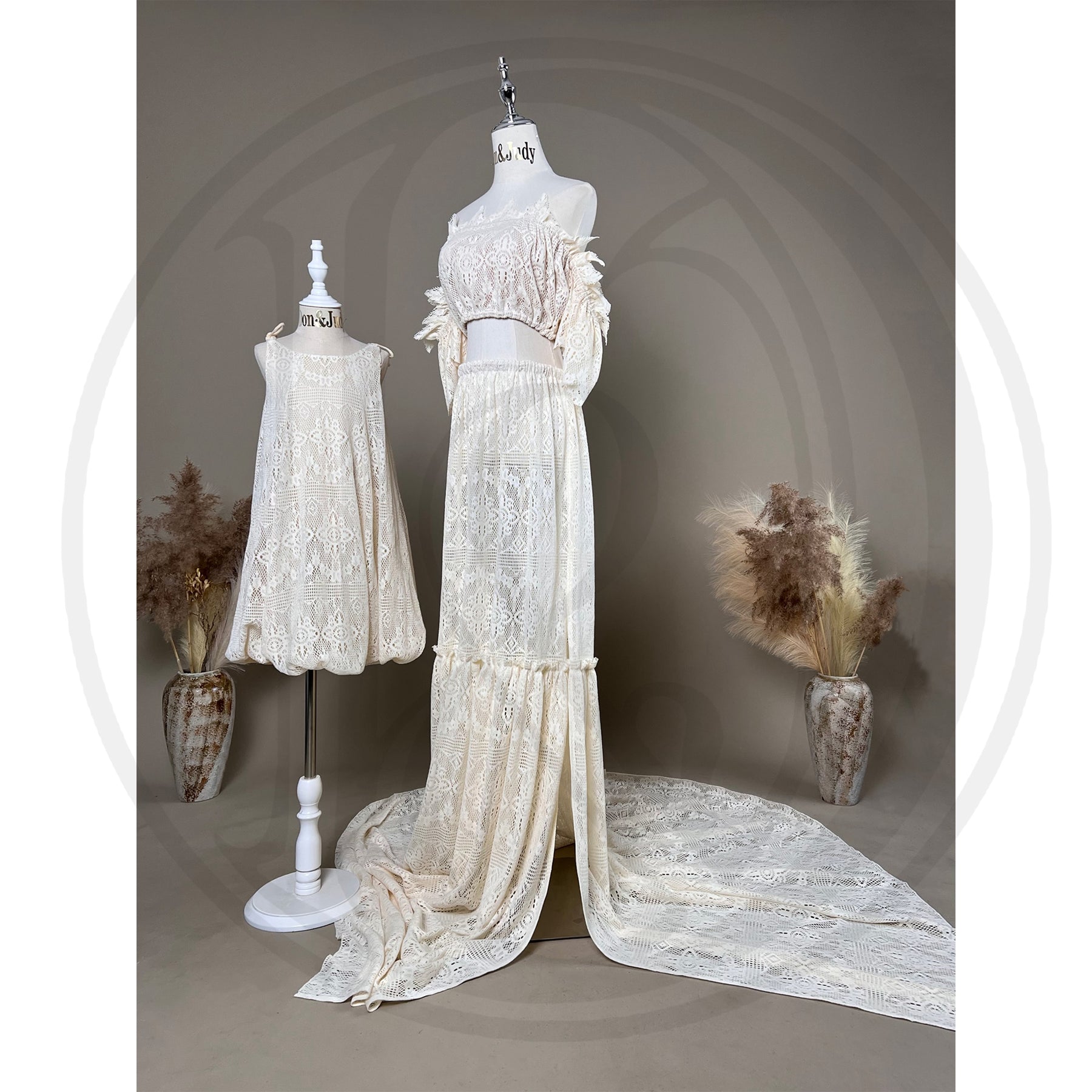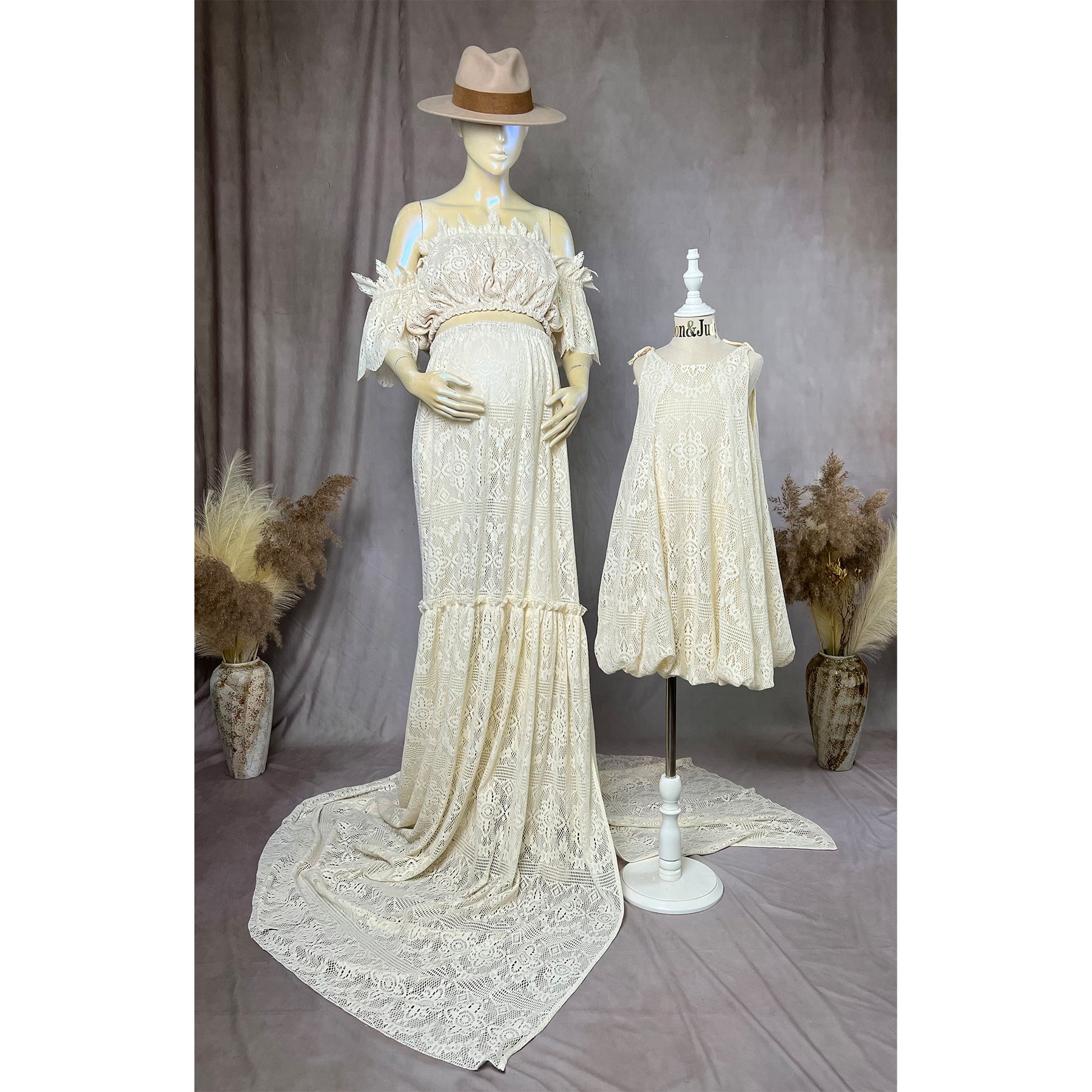 Product name: Boho Cotton 2-piece Mommy Gown with Matched Little Girls Dress Set Pregnancy Photography Dresses Bohemia Maxi Gown Photo Shoot Prop