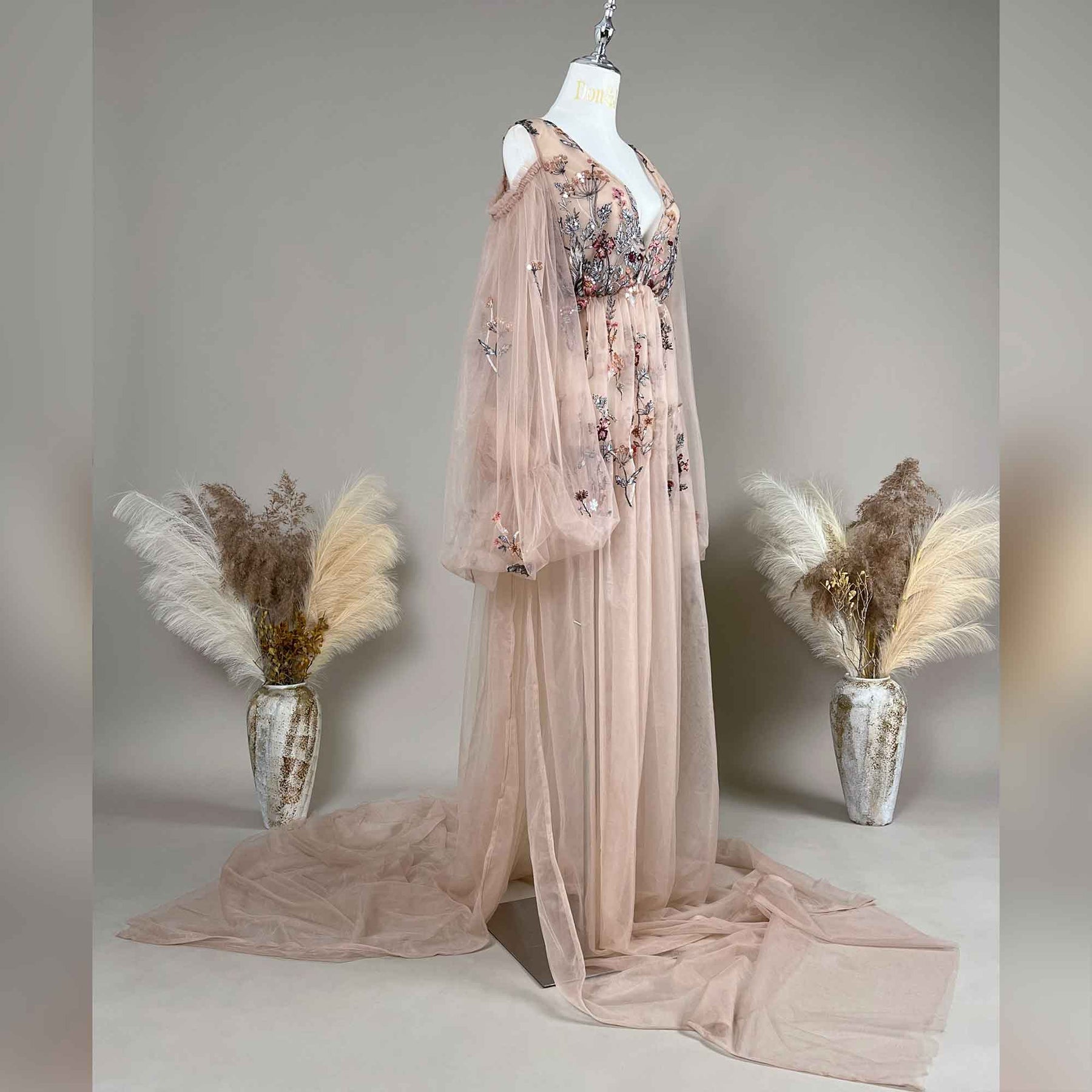 Product name: Tulle Embroidered Belly Open OR Side Silt Maternity or Non-maternity Gown Party Dresses for Photography Props Baby Shower Photo Props