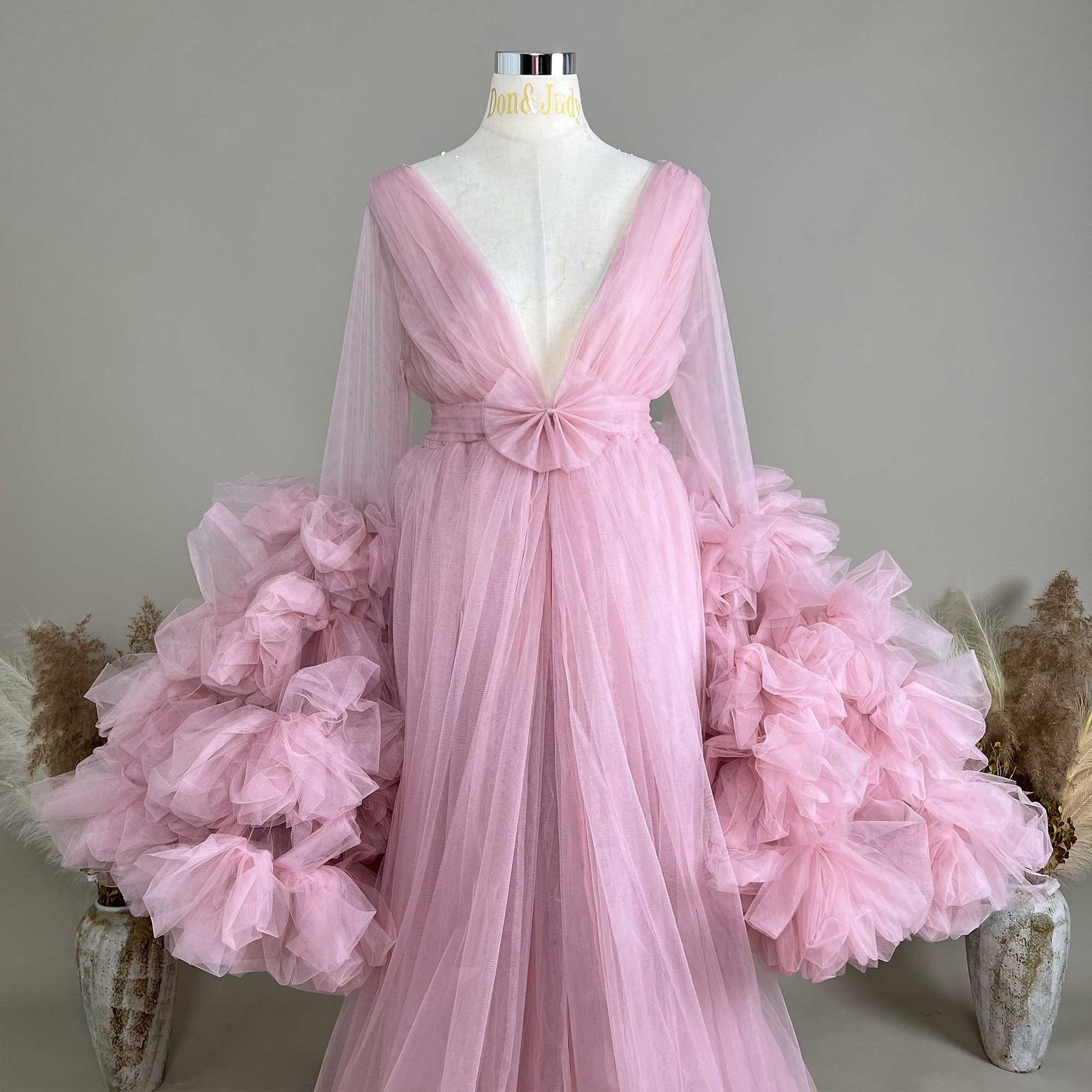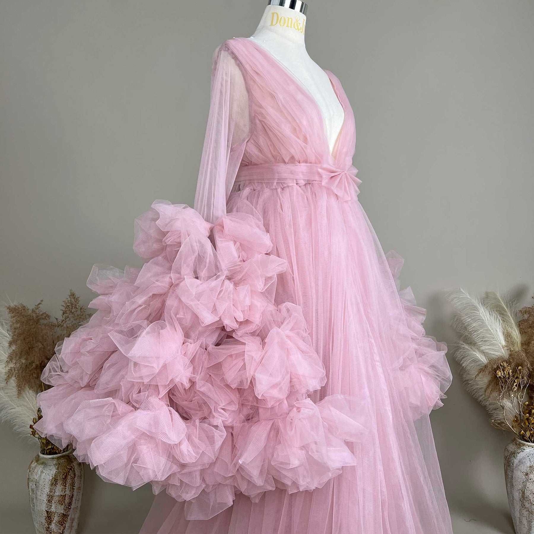 Product name: Pink Lace-trim V-neck Gown – Maternity or Non-maternity Dresses for Photography Props Baby Shower Photo Props