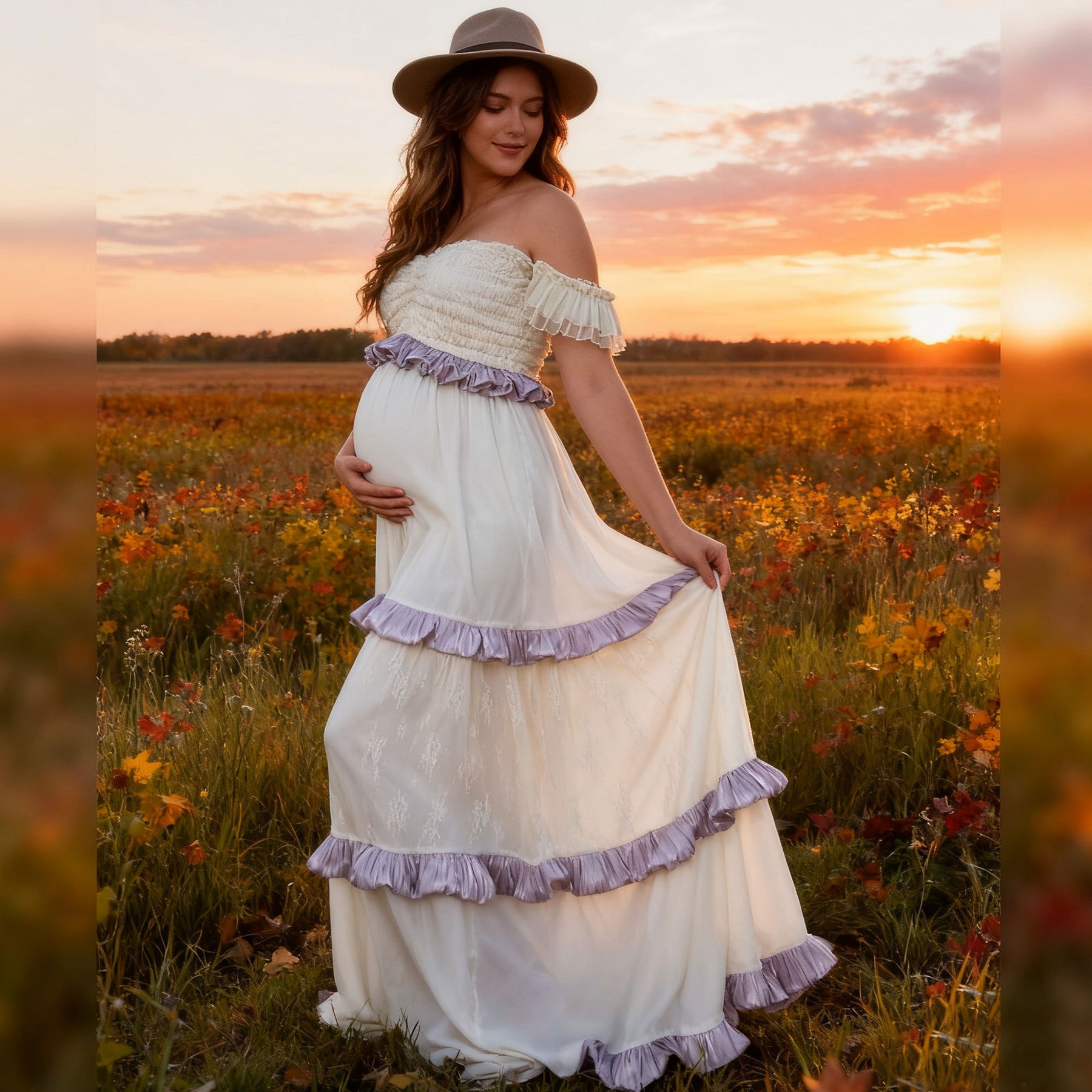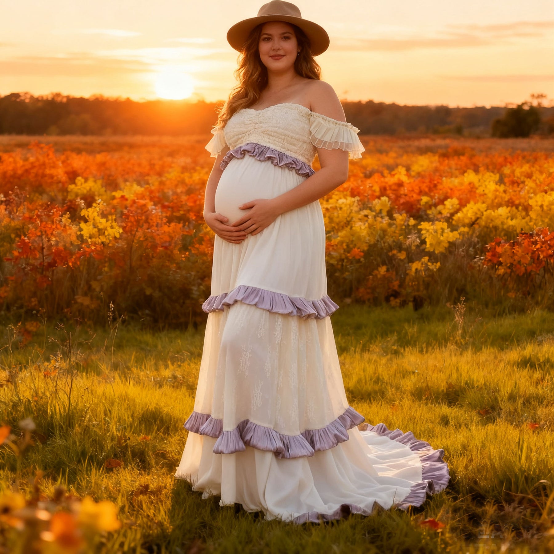 Product name: Strapless Tiered Gown – Maternity or Non-maternity Dresses for Photography Props & Baby Shower Photoshoot
