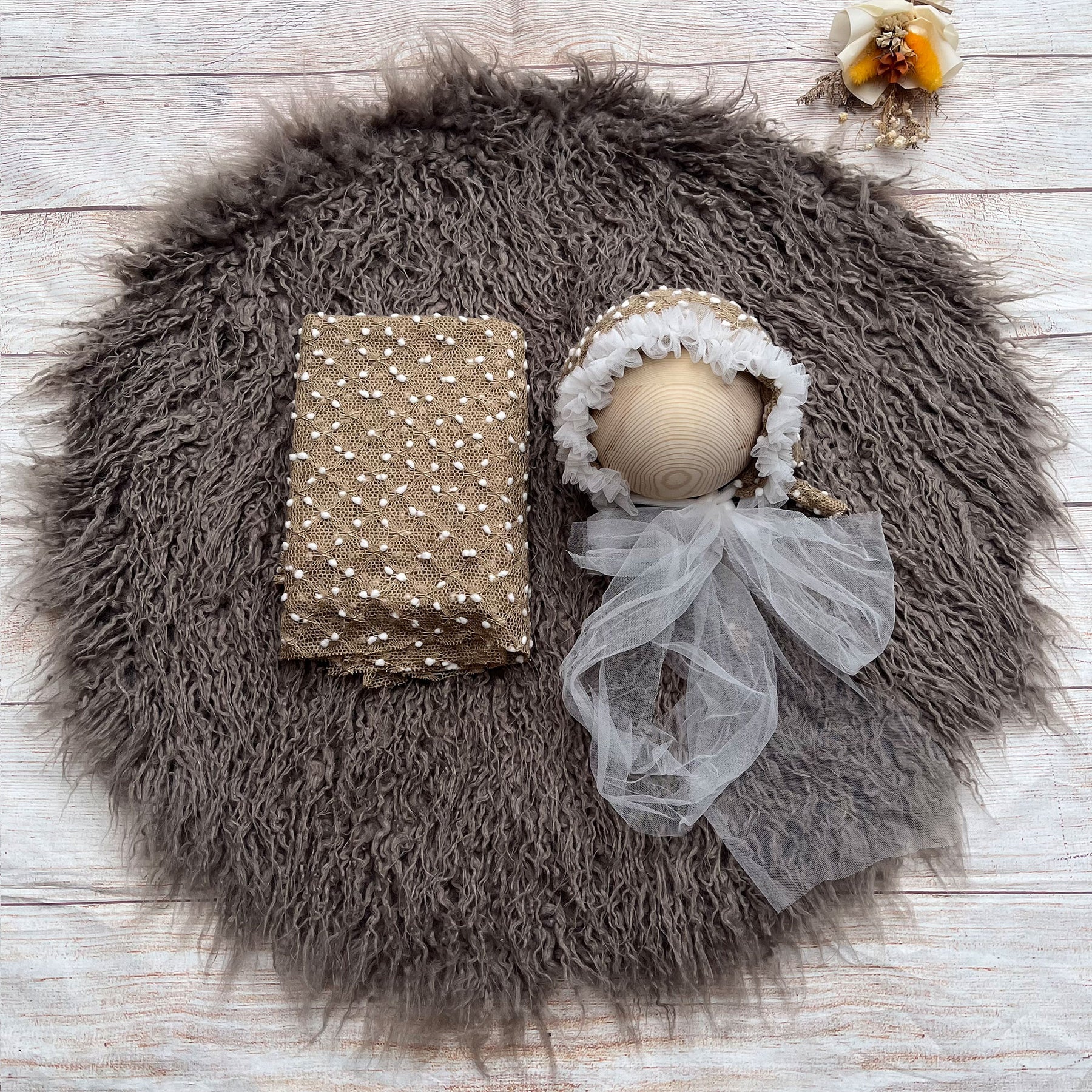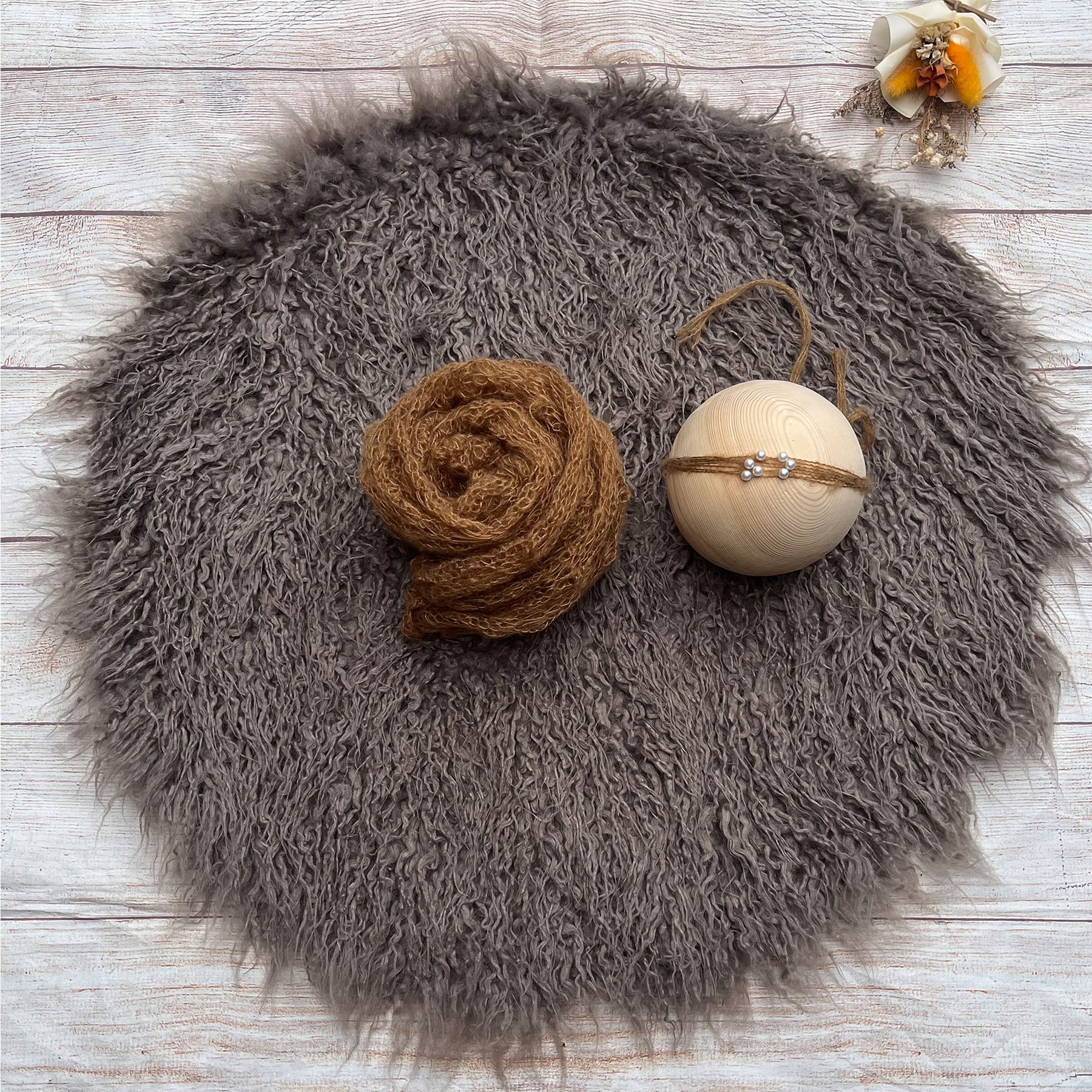 Round 60CM and Heart and 75x50cm Faux Fur with Matched Wrap and Headwear Set for photo shoot