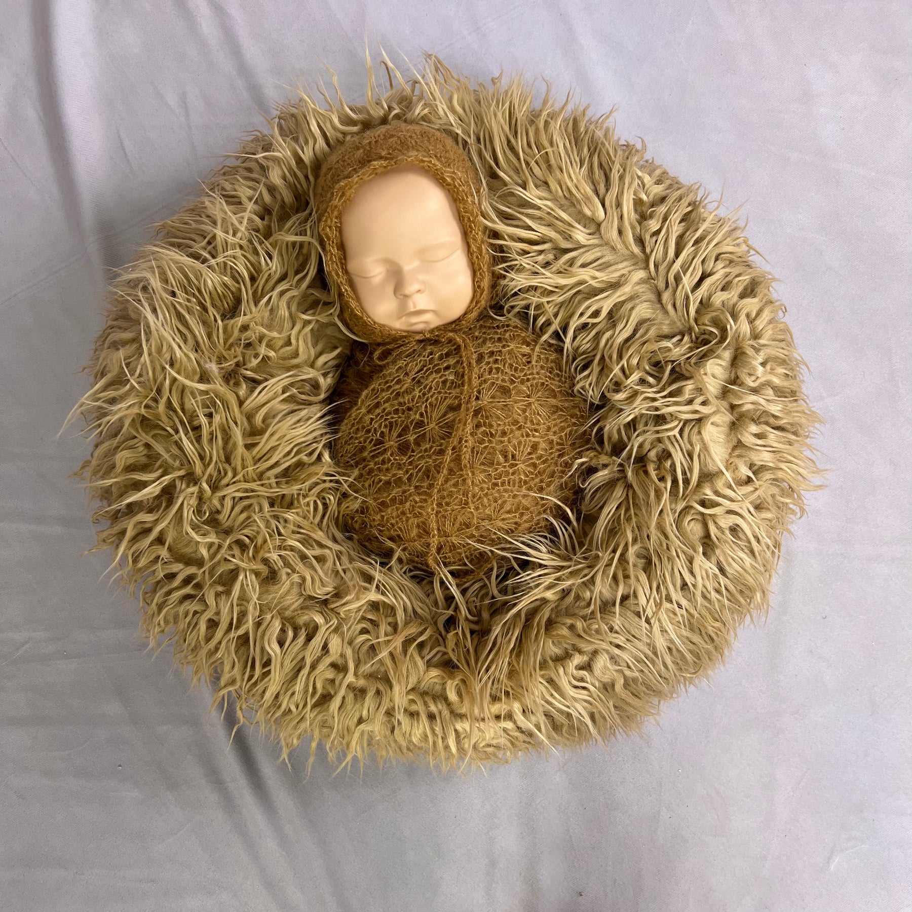 Ready to ship Set (Faux Fur Donut Posing Prop with matched Wrap and Hat)