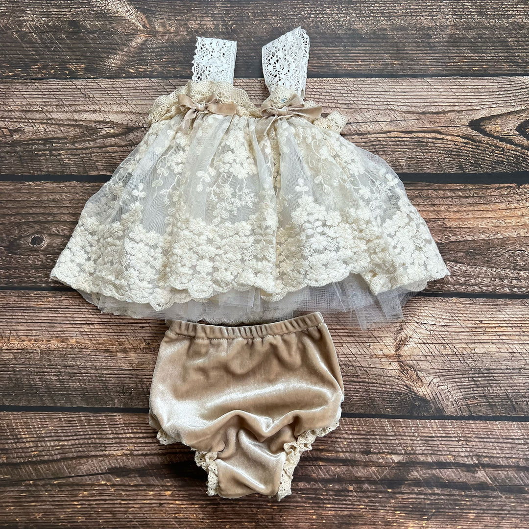 Beige Lace Newborn Romper