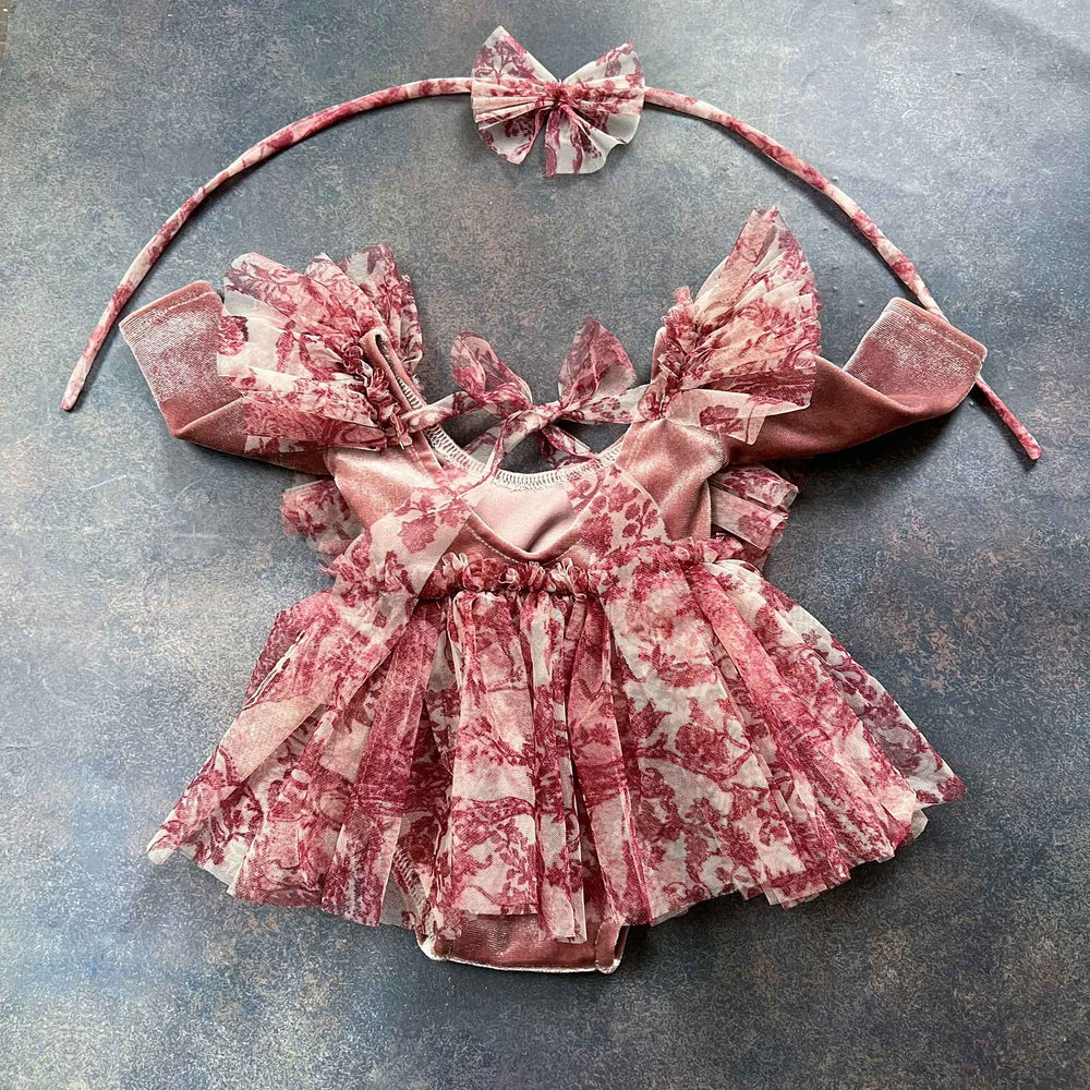 Newborn Rust Red Tulle Romper & Headband Set