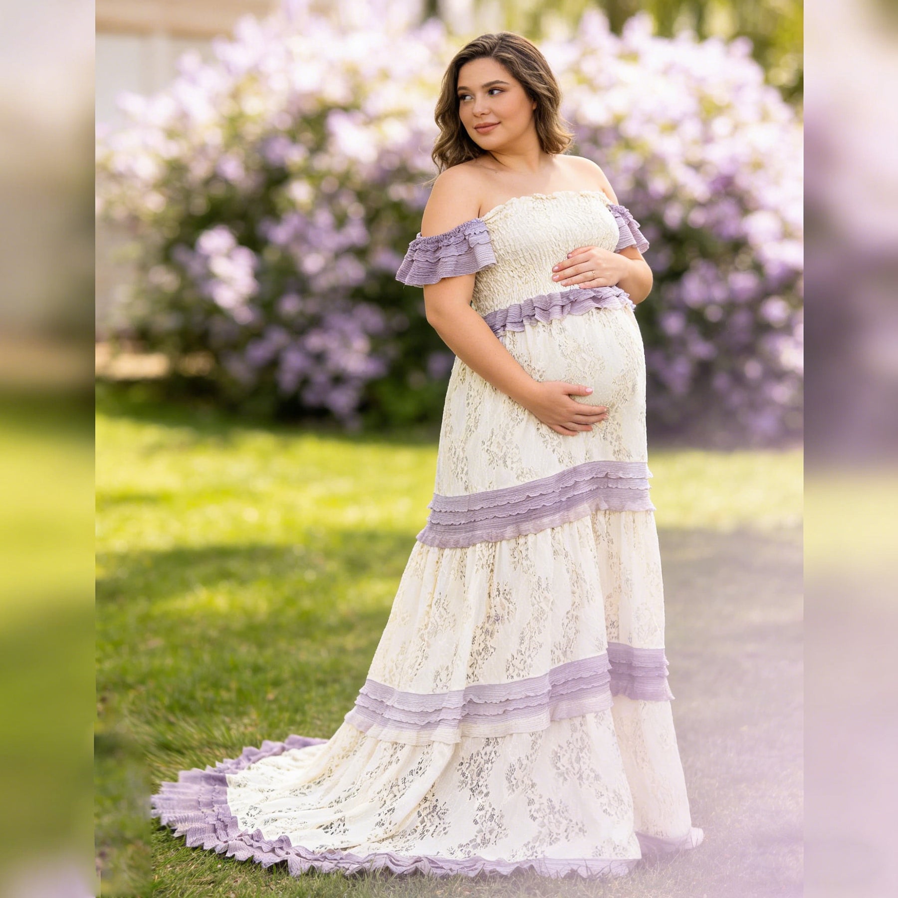 Product name: Lace Patchwork Maternity or Non-maternity Gown Party Dresses for Photography Props Baby Shower Photo Props