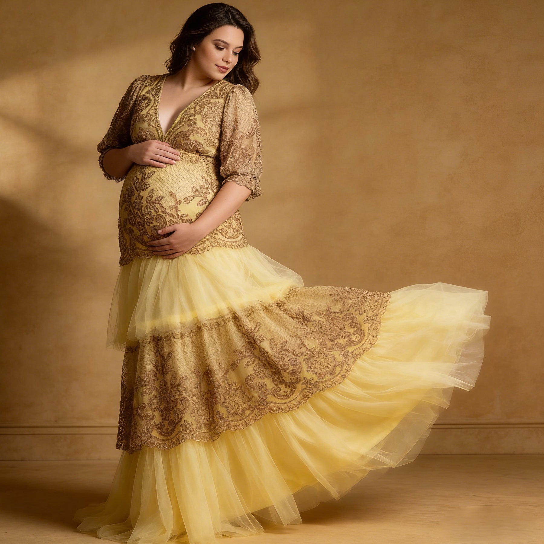 Product name: Embroidered Tulle Maternity or Non-maternity Gown Party Dresses for Photography Props Baby Shower Photo Props