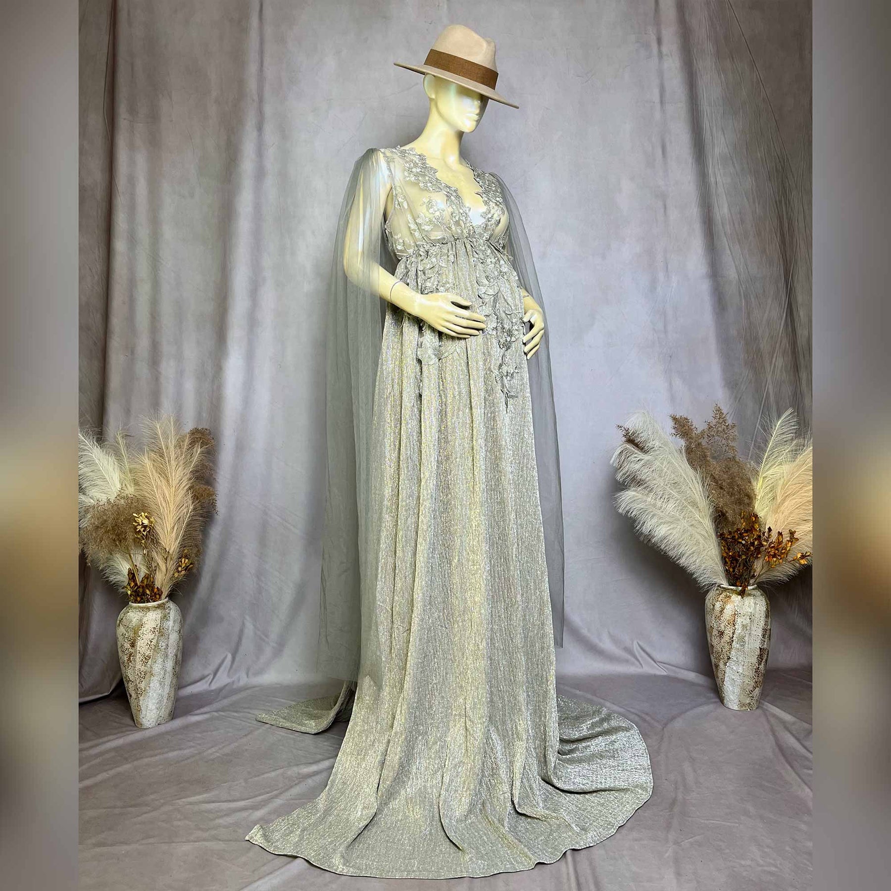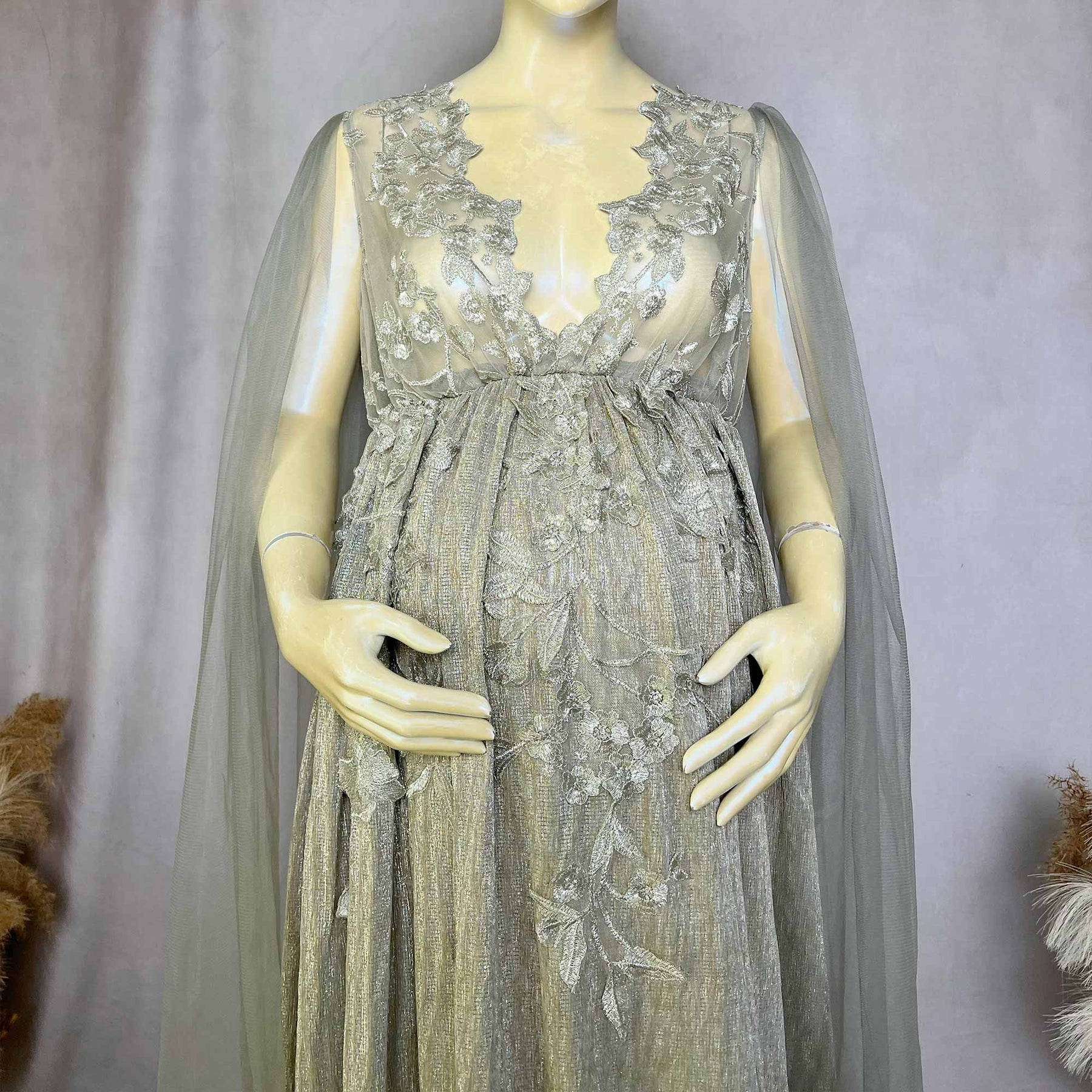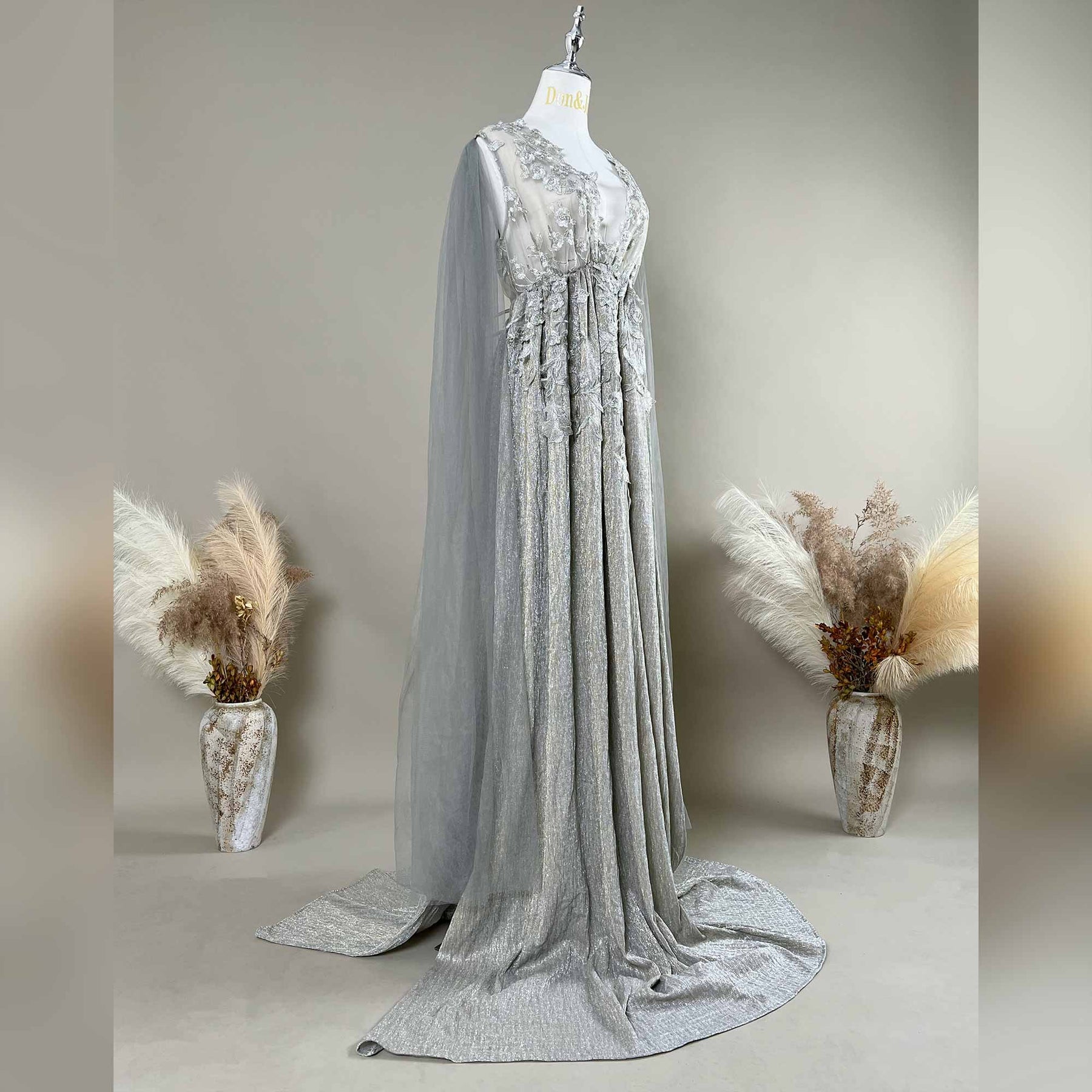 Product name: Grey Tulle Embroidered Flower Maternity or Non-maternity Gown Party Dresses for Photography Props Baby Shower Photo Props
