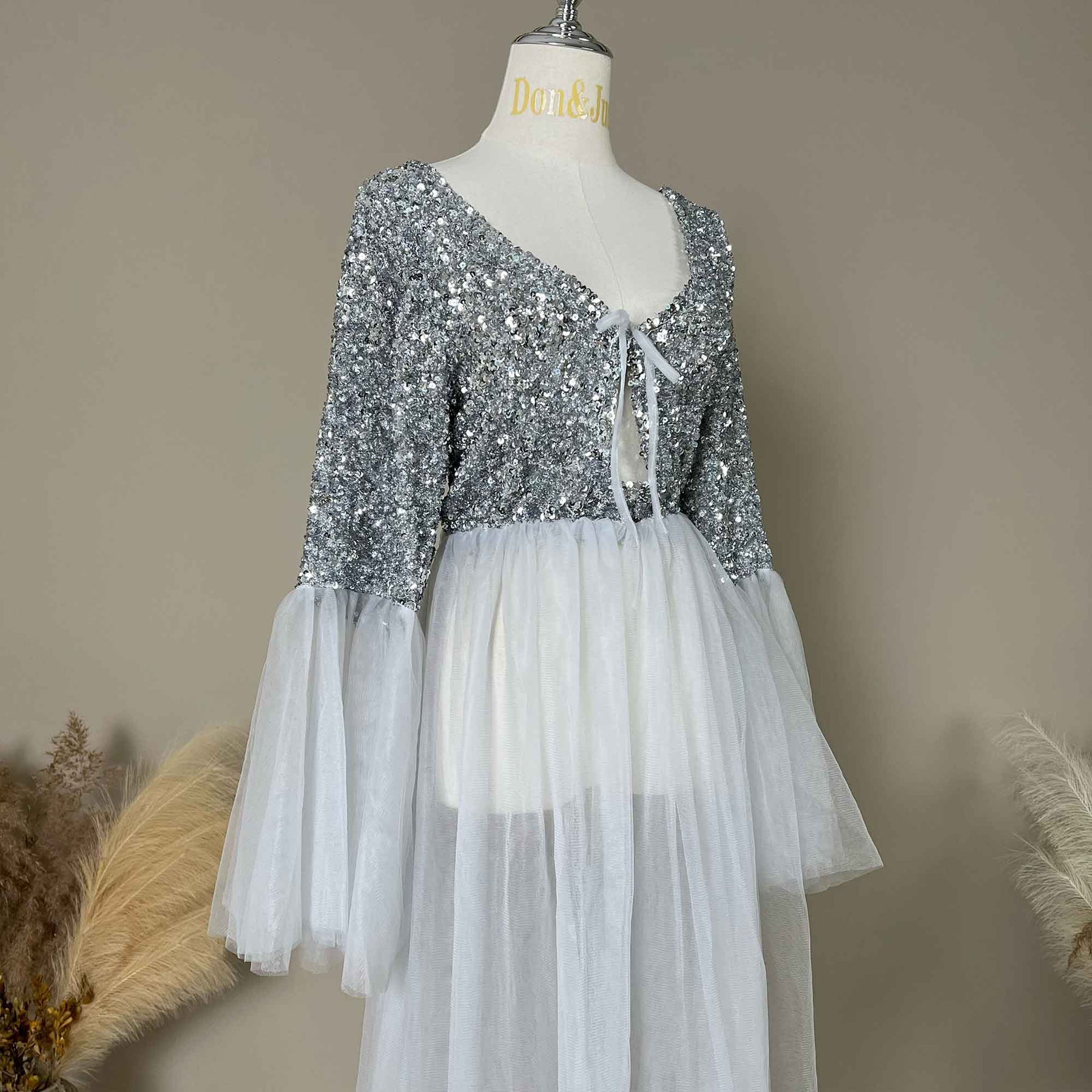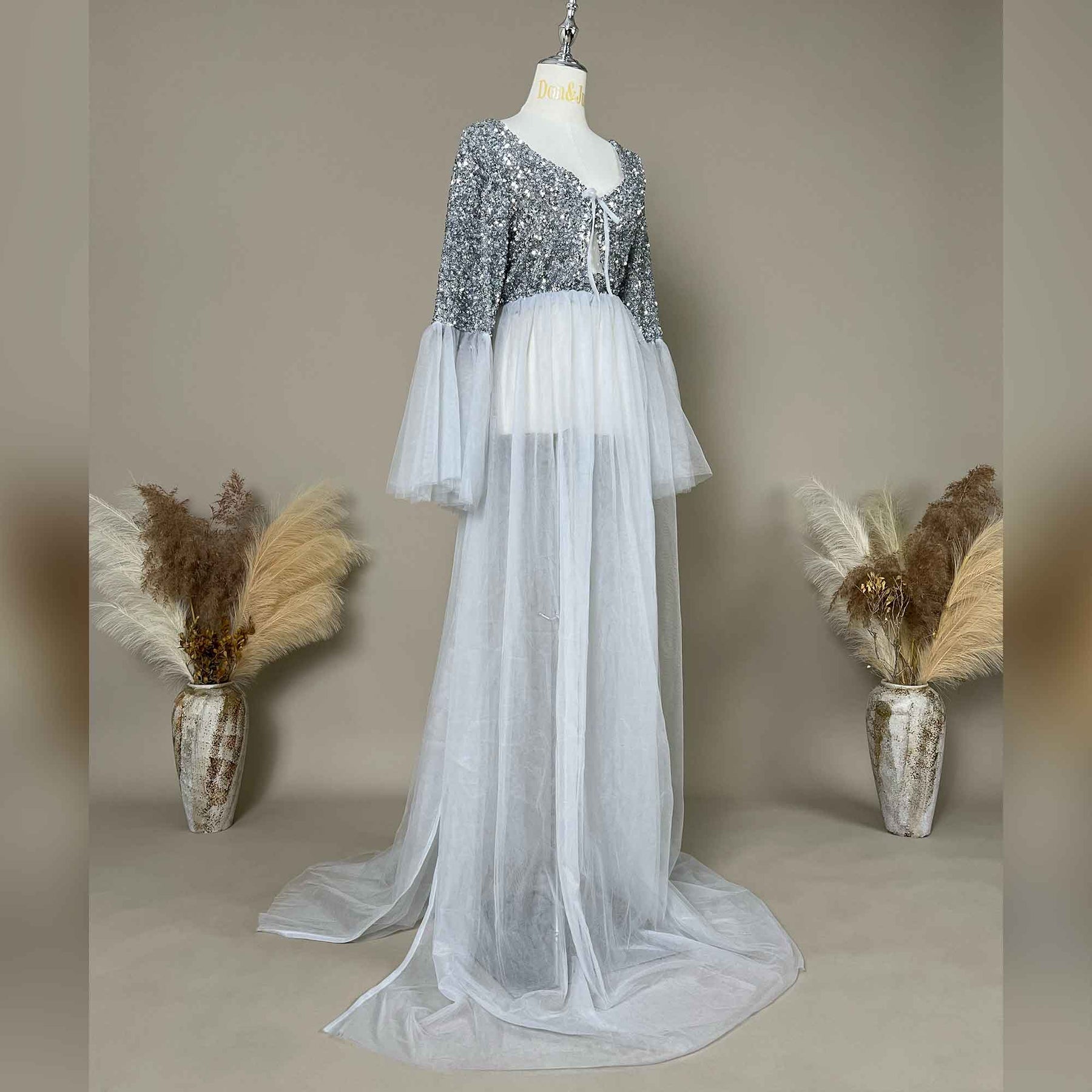 Product name:  Graceful Sequin Tulle Evening Gown – Maternity or Non-maternity Dresses for Photography Props Baby Shower Outfit