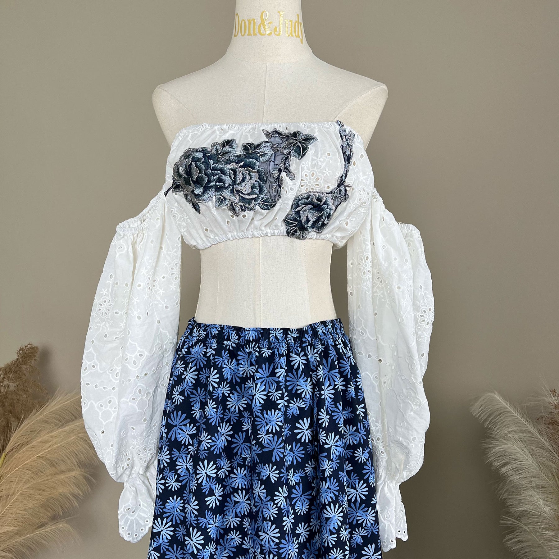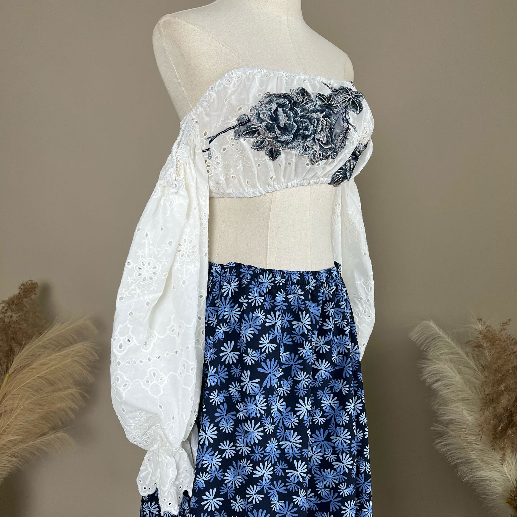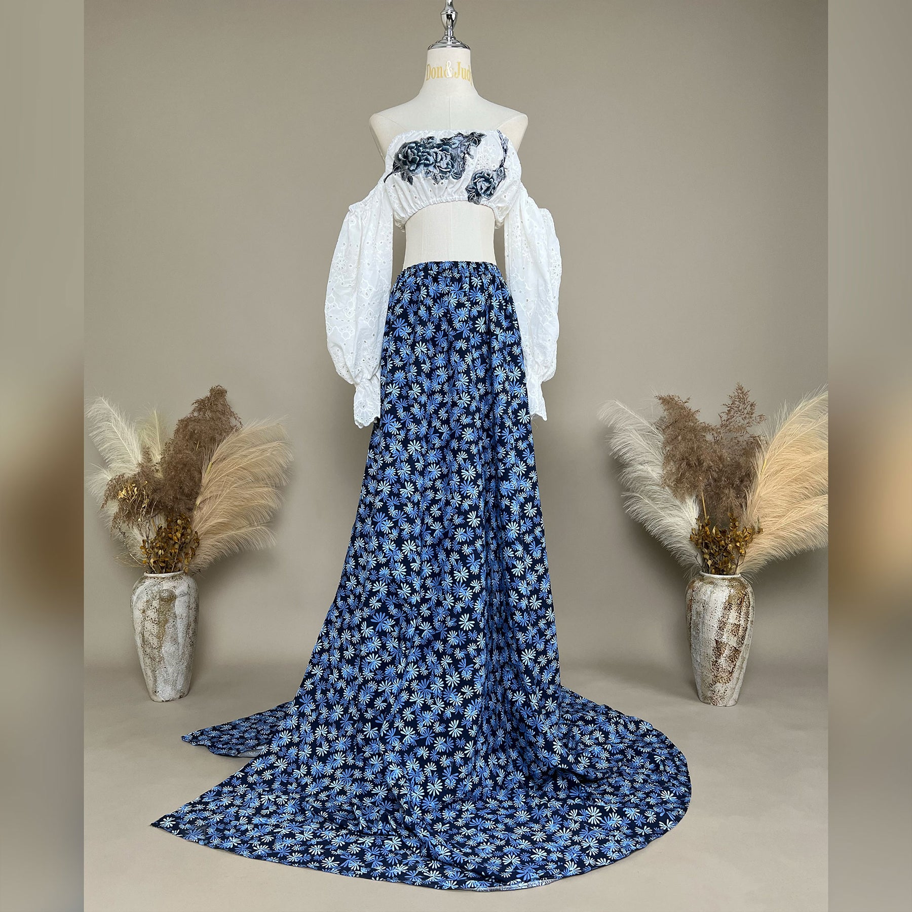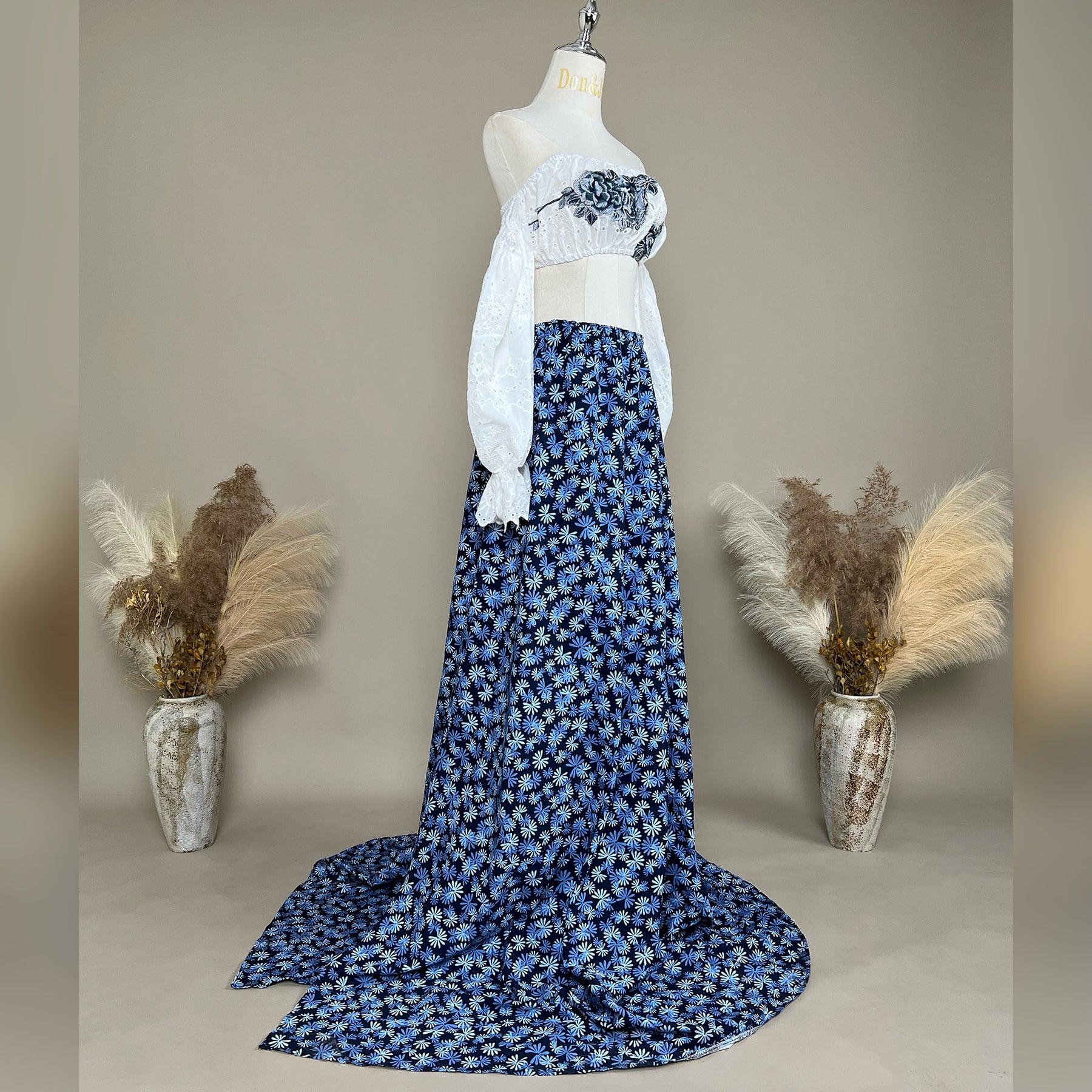 Product name:  Blue and White Two-piece Dress Set – Maternity or Non-maternity Gown Dresses for Photography Props & Baby Shower Photoshoot