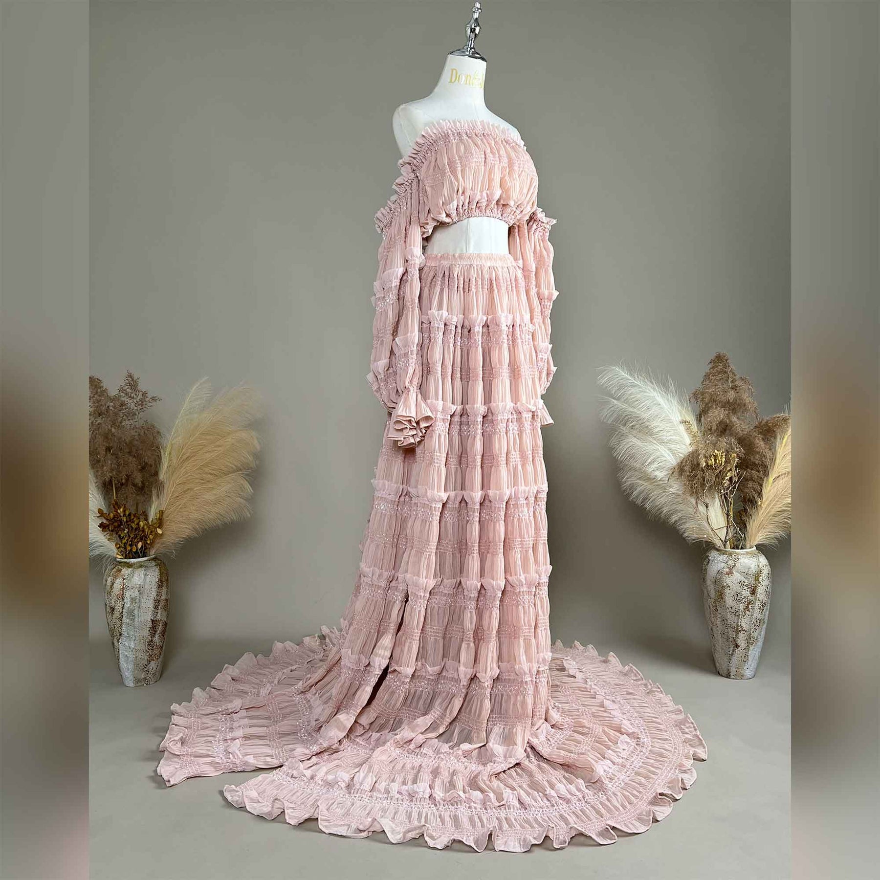 Product name: Boho 2 Piece Gown Top and Skirt Set Dress Maternity Gown Evening Party Dresses Pregnant for Women Photography Props Baby Shower Gift