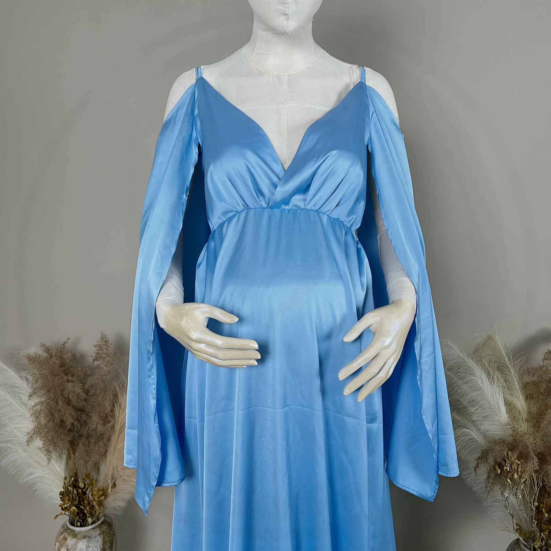Product name:Sim Silk V-Neck Sleeveless Camisole with Open Sleeves and Side-Slit Skirt Maternity Gown Pregnant Dress Photoshoot Baby Shower