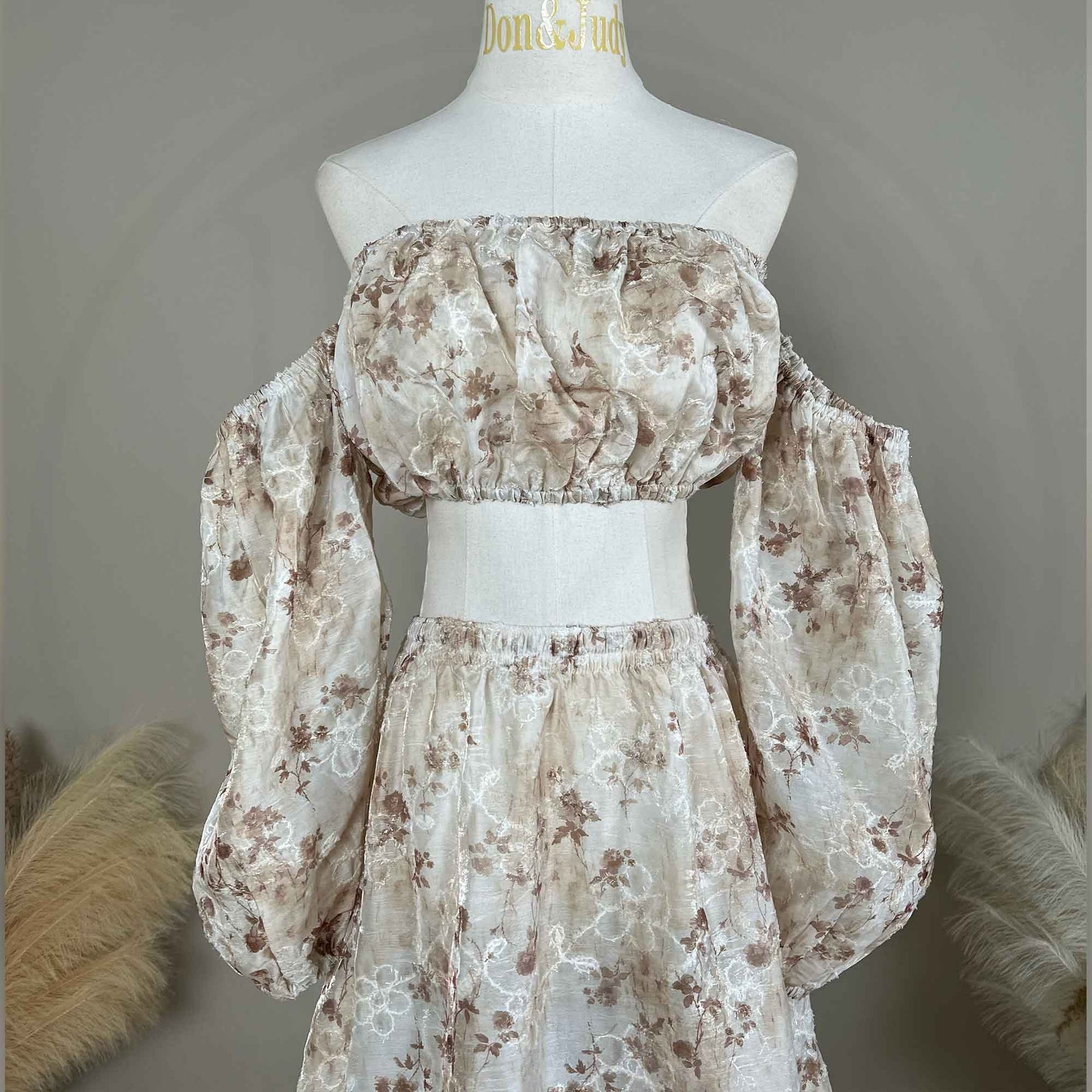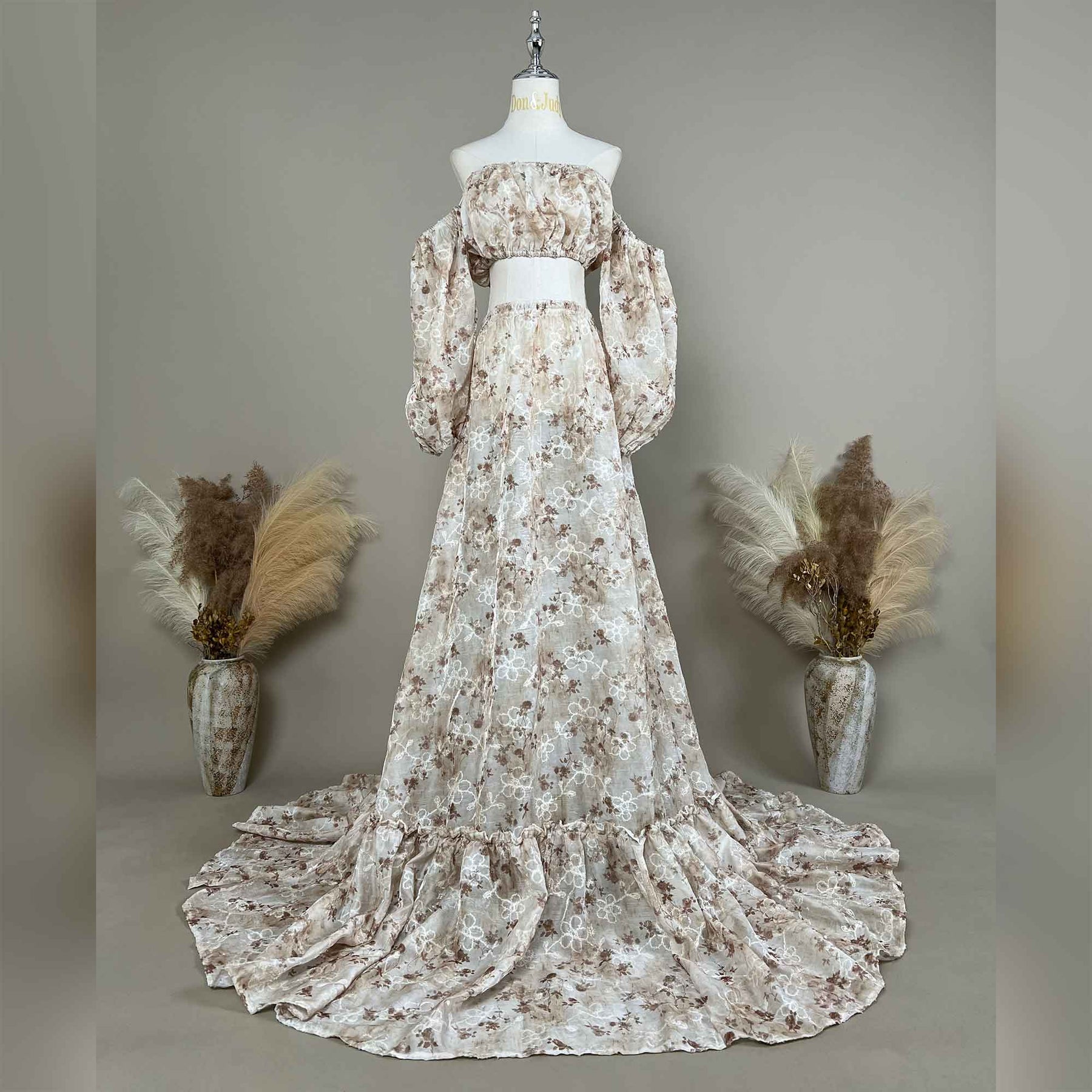 Product name: Gilded Coffee Two Piece Set Embroidered Strapless Crop Top Matching Skirt with Metallic Thread Dress Maternity or Non-maternity Gown Pregnant Dress Photoshoot Baby Shower Gift