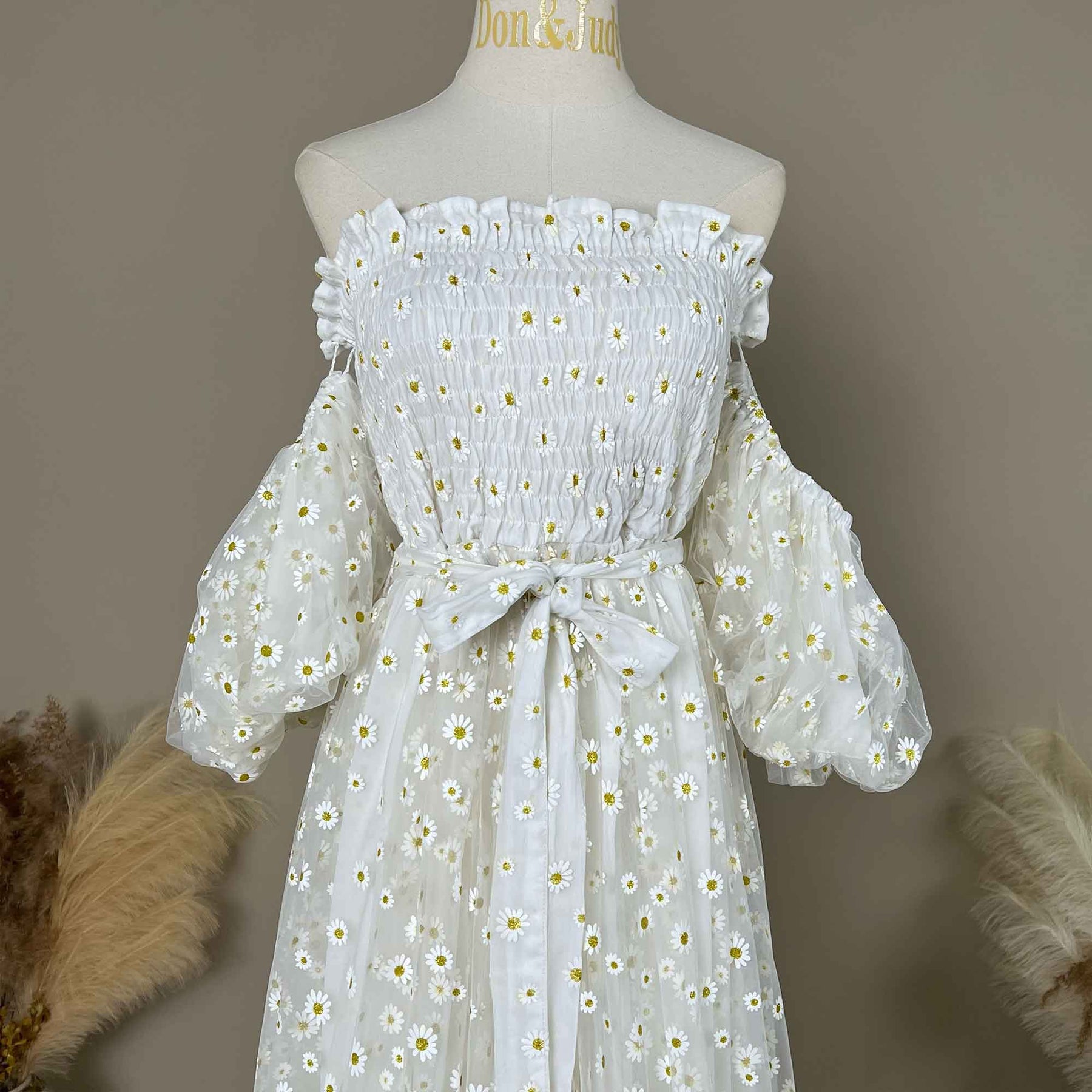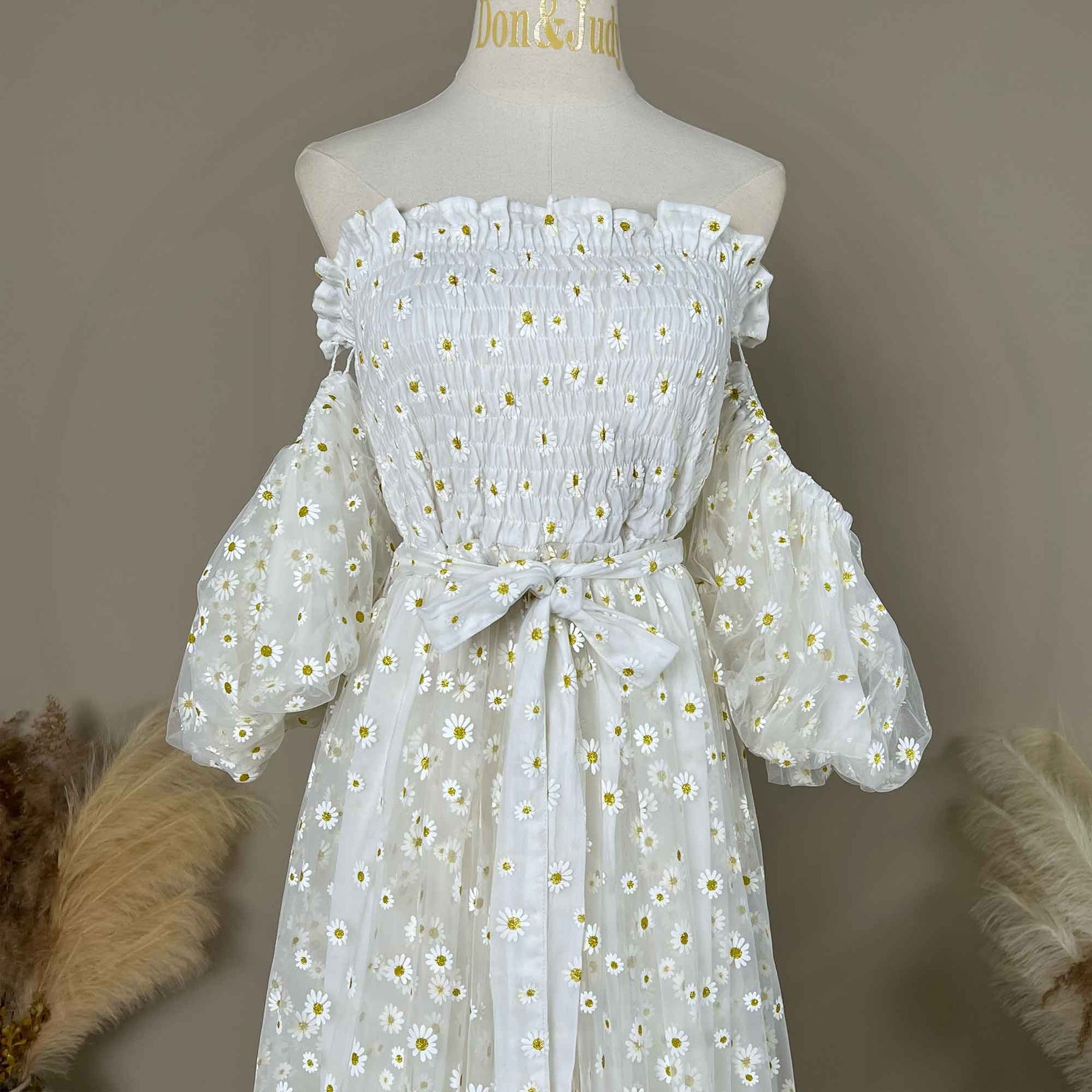 Product name: Ivory Tulle Daisy Print Stretch Bandeau Front Slit Dress Gown for Photoshoot Baby Shower