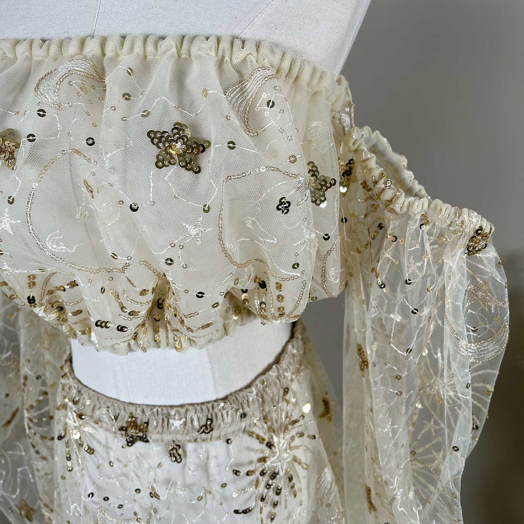 Celestial Gold Two-Piece Set Embroidered Strapless Crop Top with Detachable Sleeves & Matching Train Skirt with Metallic Starburst Thread Dress Maternity or Non-maternity Gown Pregnant Dress Photoshoot Baby Shower Gift