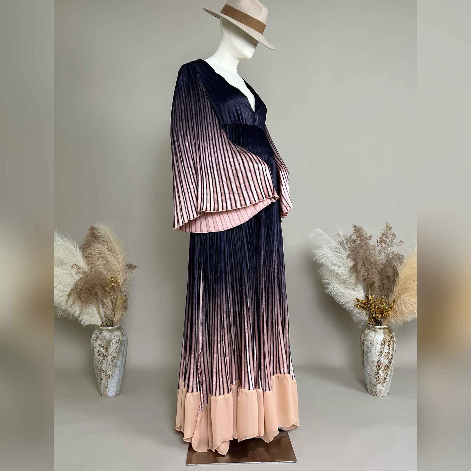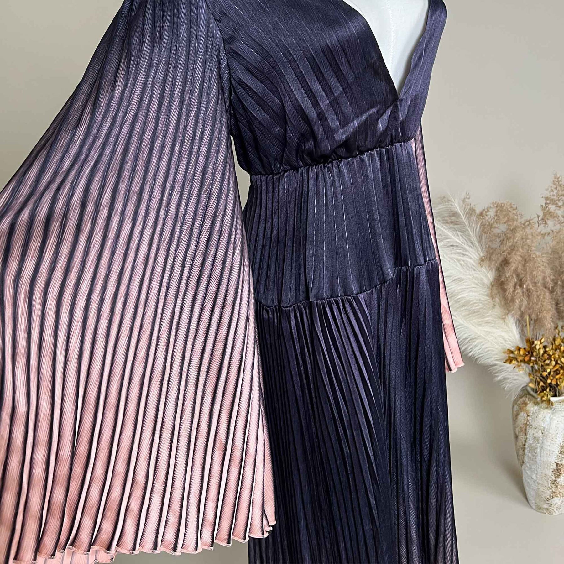 Hand wash cold/ Dry clean/ Machine Washable in laundry bag/ Color separated washing/ Do not bleach/ Iron or steam the folds before photography