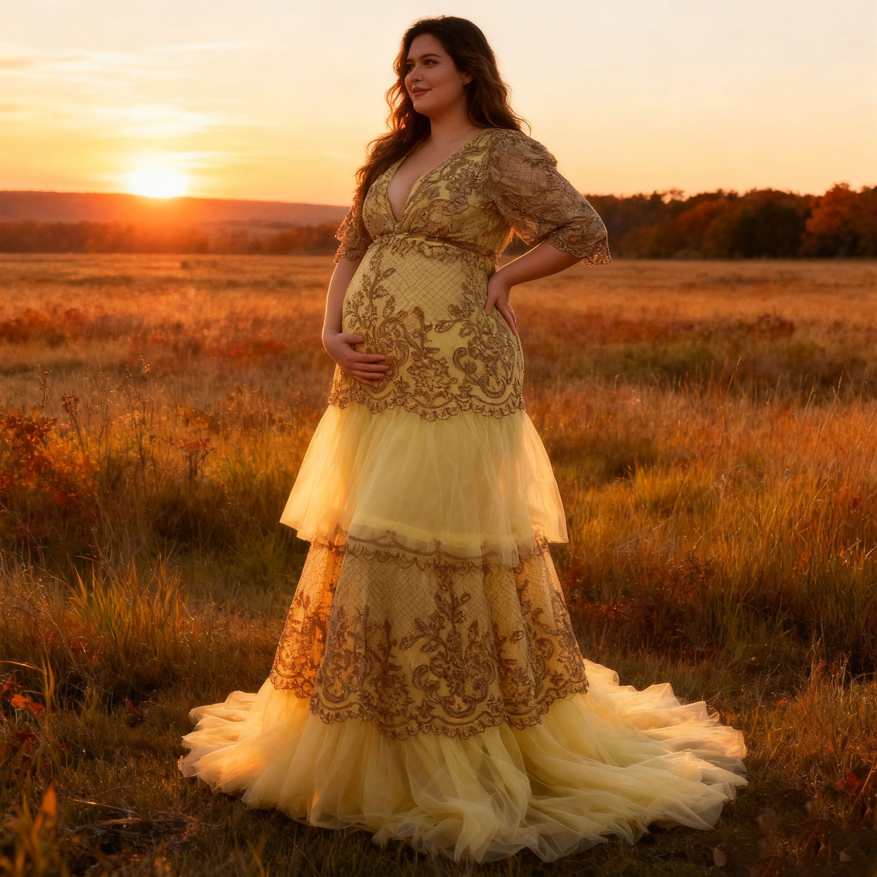 Product name:  Embroidered Tulle Maternity or Non-maternity Gown Party Dresses for Photography Props Baby Shower Photo Props