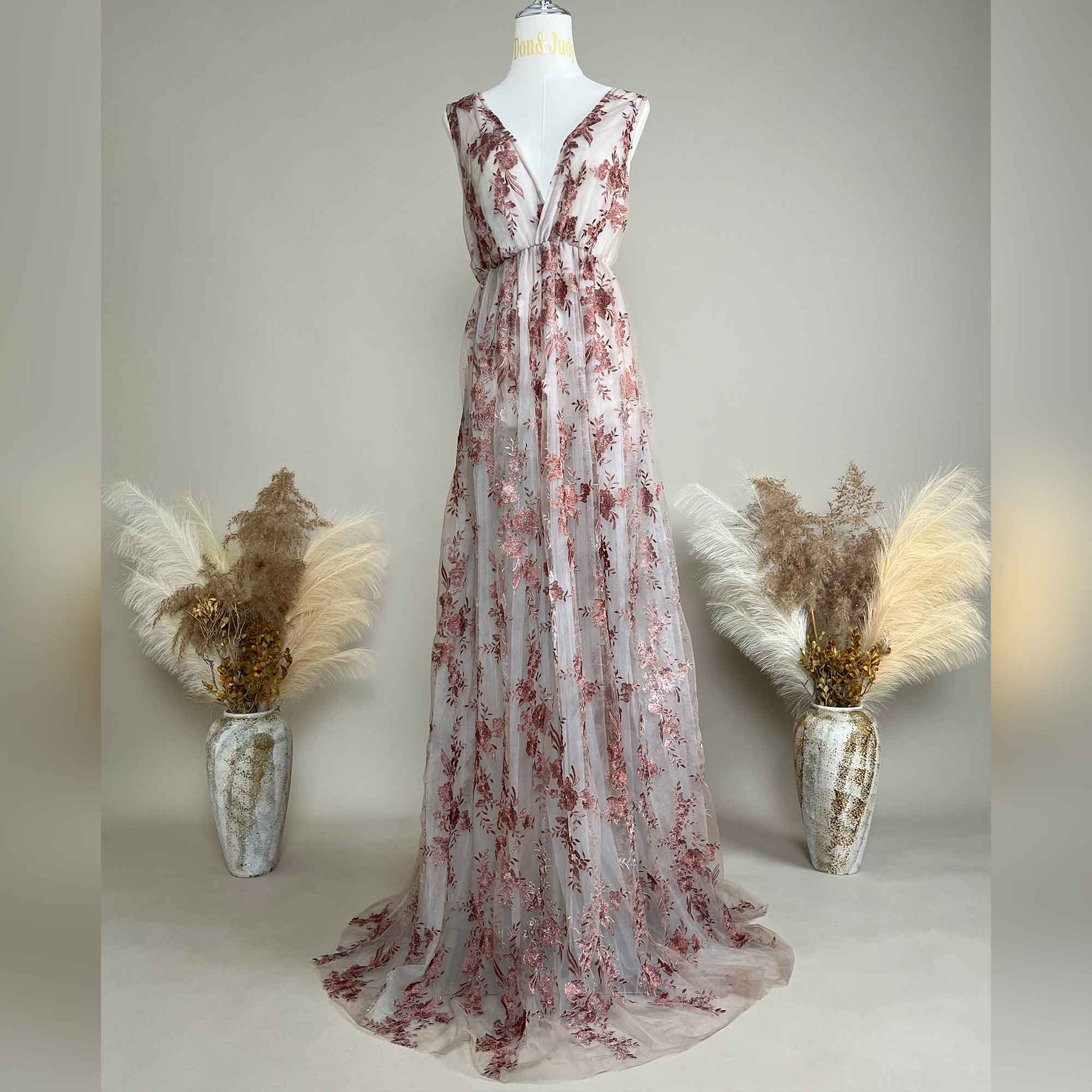 Product name:  Floral V-Neck Sexy Long Gown – Maternity or Non-maternity Dresses for Photography Props Baby Shower Photo Props