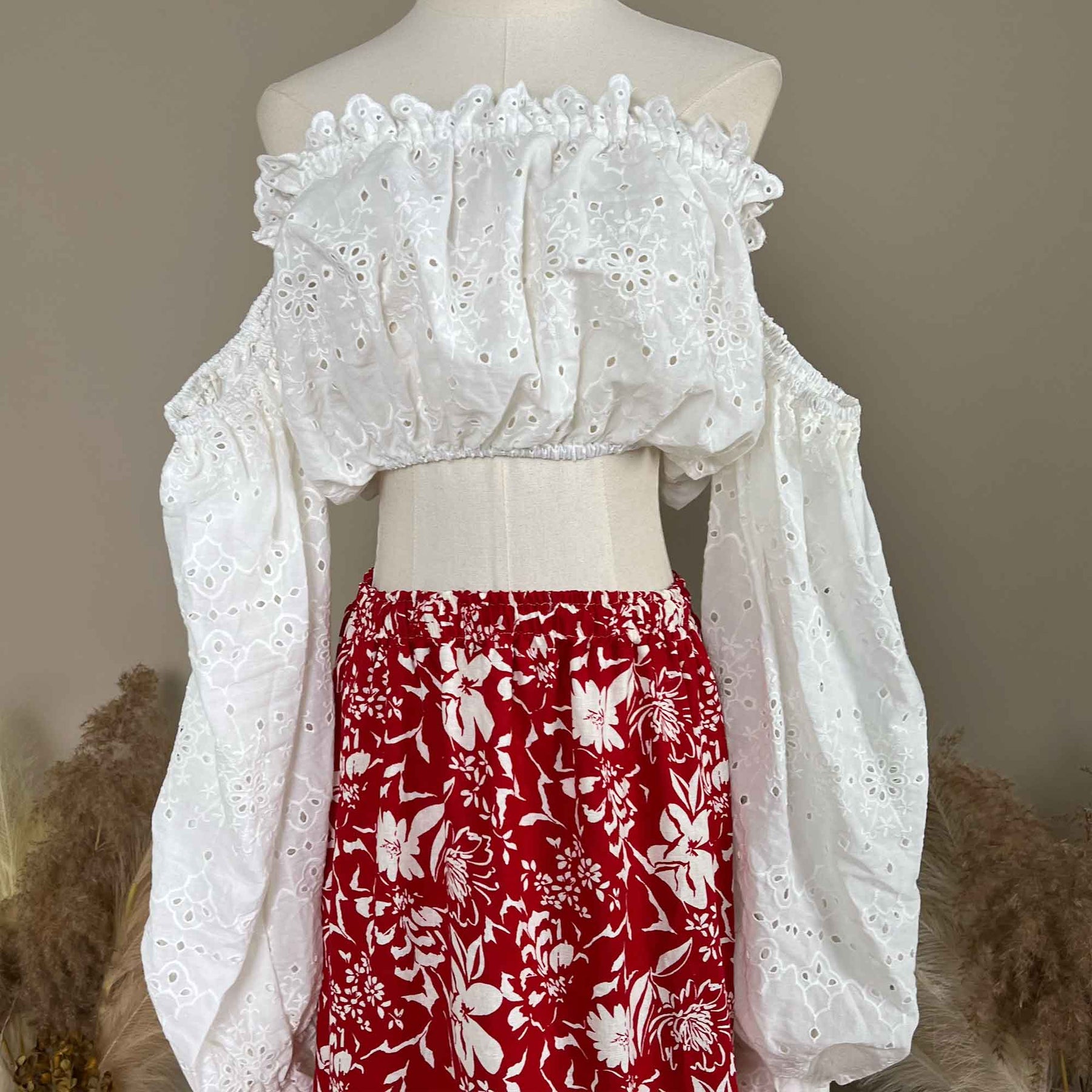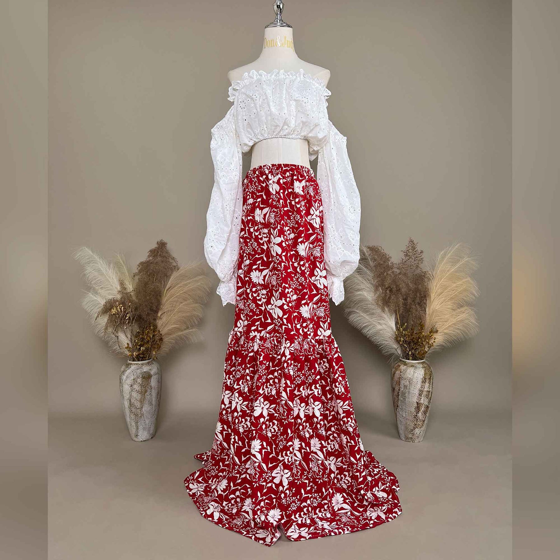 Product name: White and Red Two-piece Dress Set – Maternity or Non-maternity Gown Dresses for Photography Props & Baby Shower Photoshoot