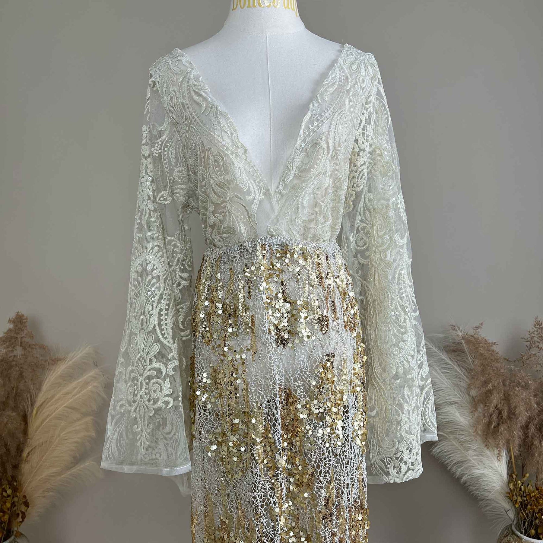 Product name: Lace Sequin V-neck Gown – Maternity or Non-maternity Dresses for Photography Props & Baby Shower Photoshoot