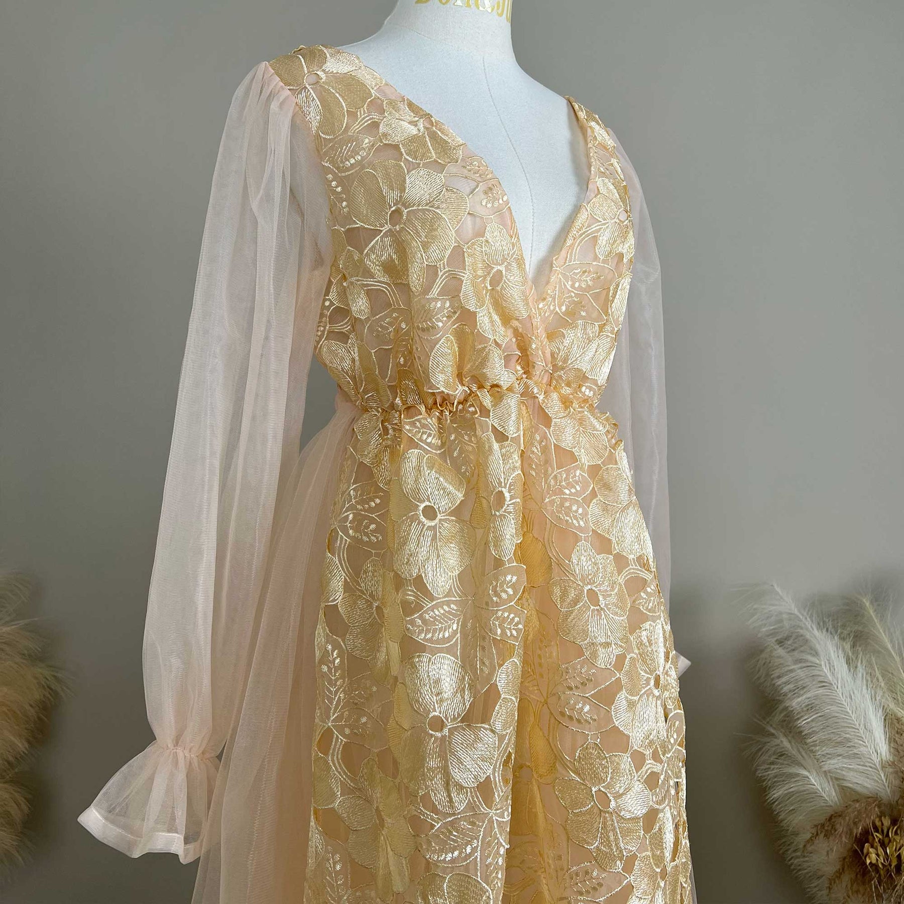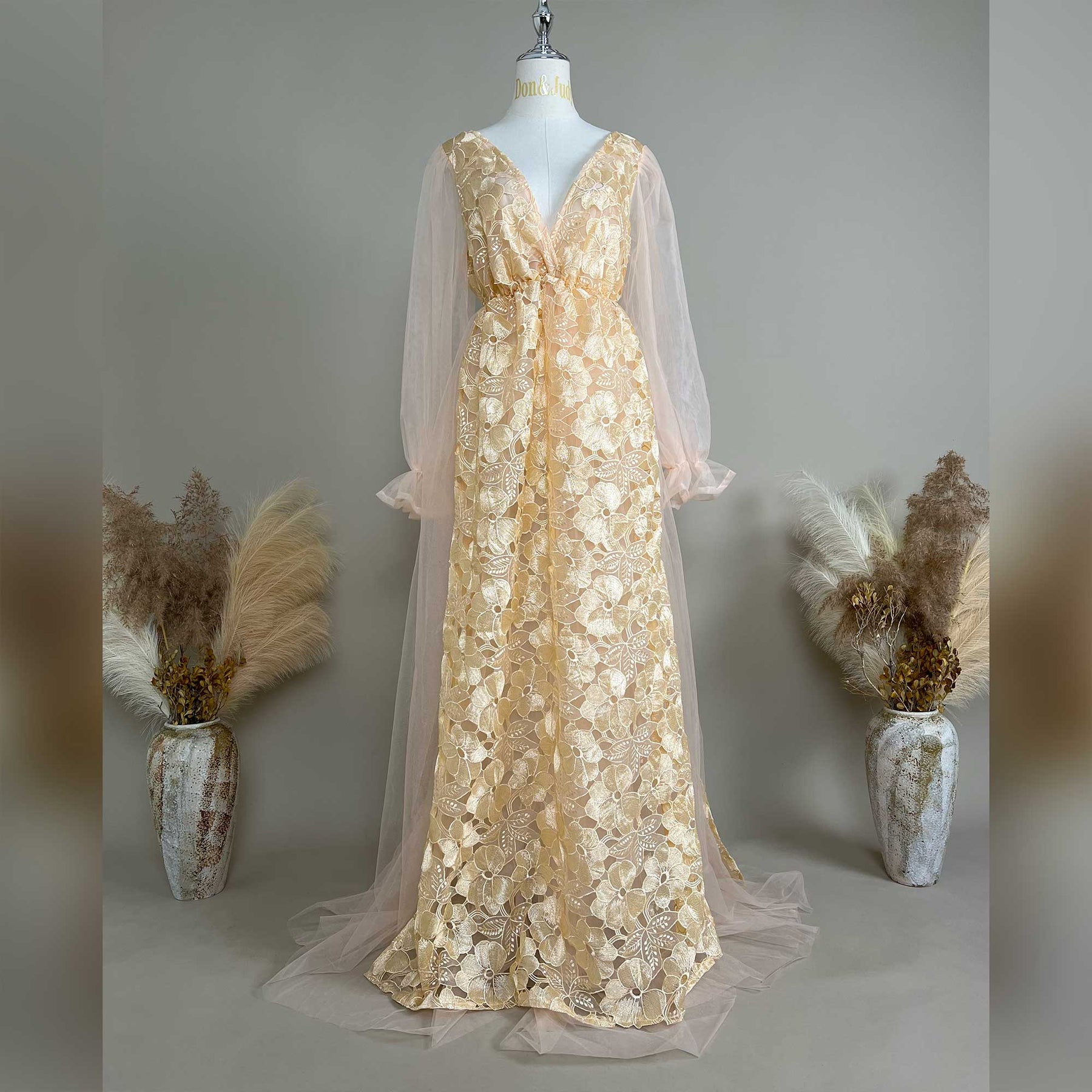 Product name: Floral Hollow-out V-neck Gown – Maternity or Non-maternity Dresses for Photography Props Baby Shower Photo Props
