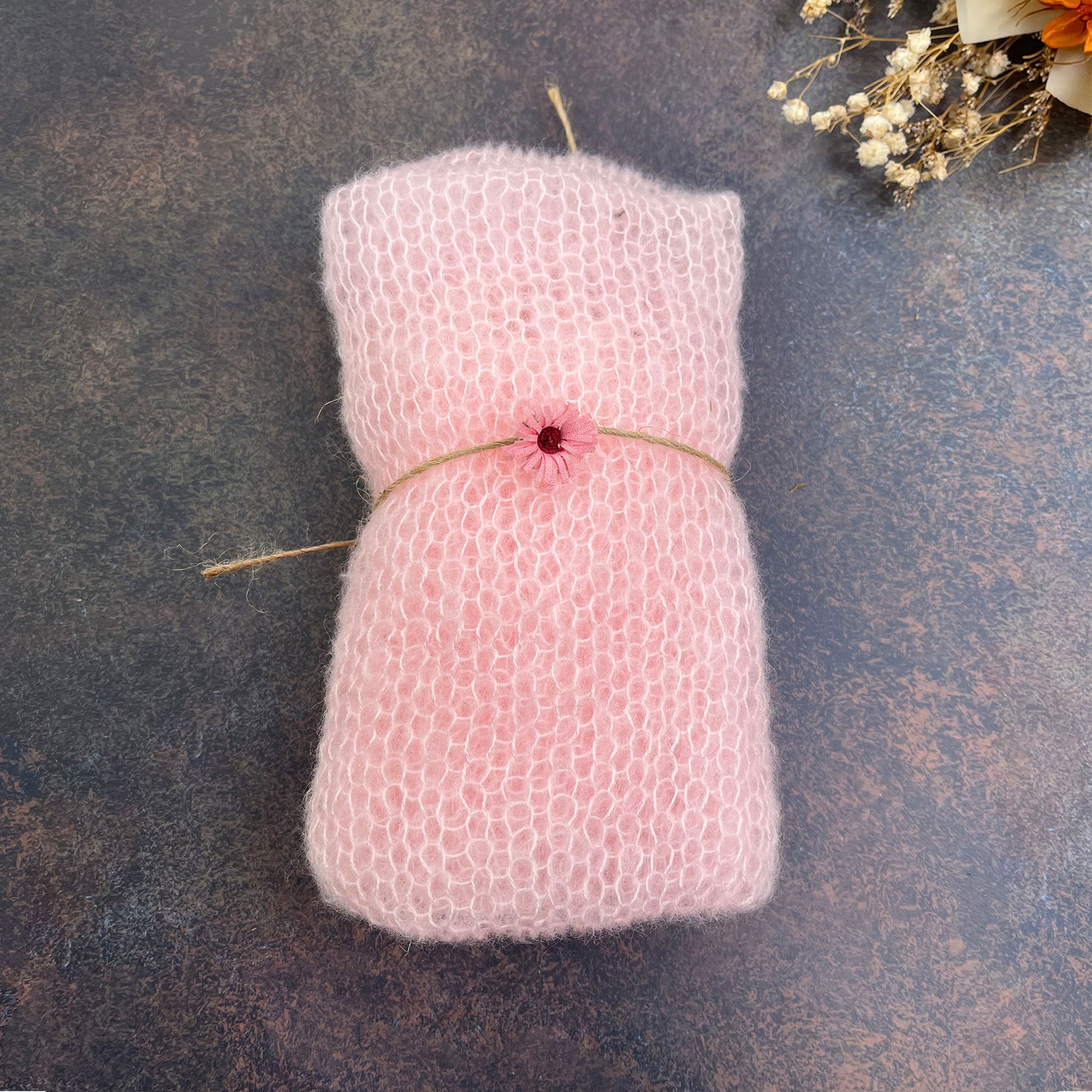 The handknit newborn mohair wrap is as light as a breeze, stretchy, skinny and delicate. A tiny baby, inside a gentle and skinny knit wrap is peace and quiet for a newborn photo session. The lovely layer knit wraps are great for a newborn photo session, baby photoshoot, photography studio, babyshower,perfect gift for pregnant wife, familyfriends, relatives and so on.